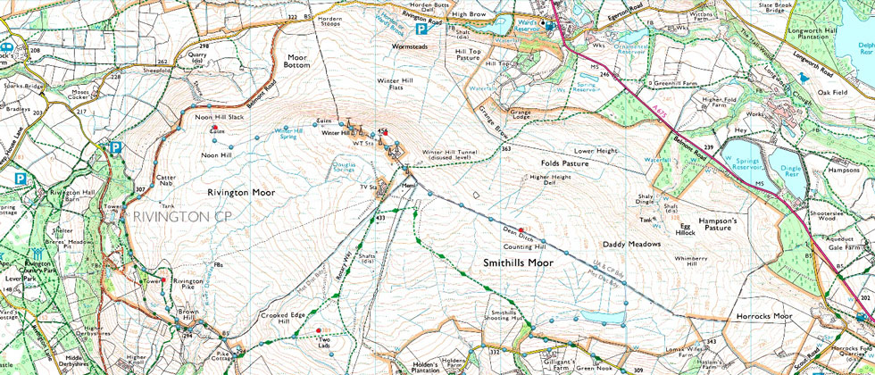 Sunny spells were forecast for the morning which never materialised but at least it was dry if not a tad gloomy with only the odd streak of light breaking through the thick canopy of cloud over head. Todays route entails collecting Winter Hill's satellite summits in Counting Hill, Noon Hill, Rivington Pike and Two Lads, it's a classic leg stretcher for those local to the area which after today, I couldn't recommend enough. |