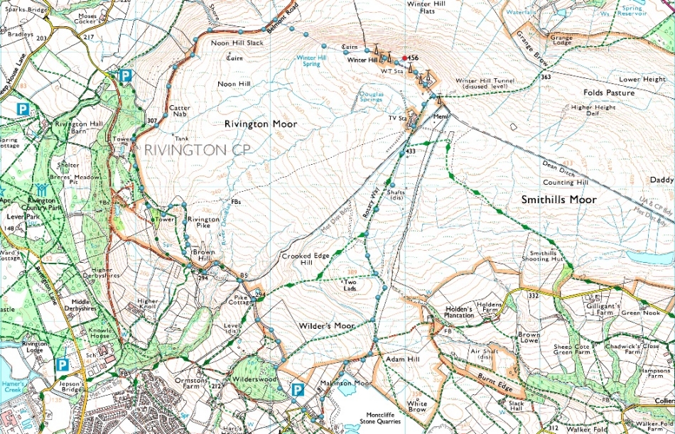 When I'm not fell walking, working or dog walking I would try to get out on my Scott Hybrid bike which I couldn't really get used too due its lack of suspension so I sold it and set about looking for a Mountain bike which could cope with the demands that Winter Hill provided. Having explored Winter Hill from every corner one of the most common means after hiking is to ride to its summit and with that I thought I'd give the new bike the debut it deserved. |