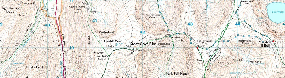 With views over Thresthwaite Mouth, Stony Cove Pike and Caudale Moor. |