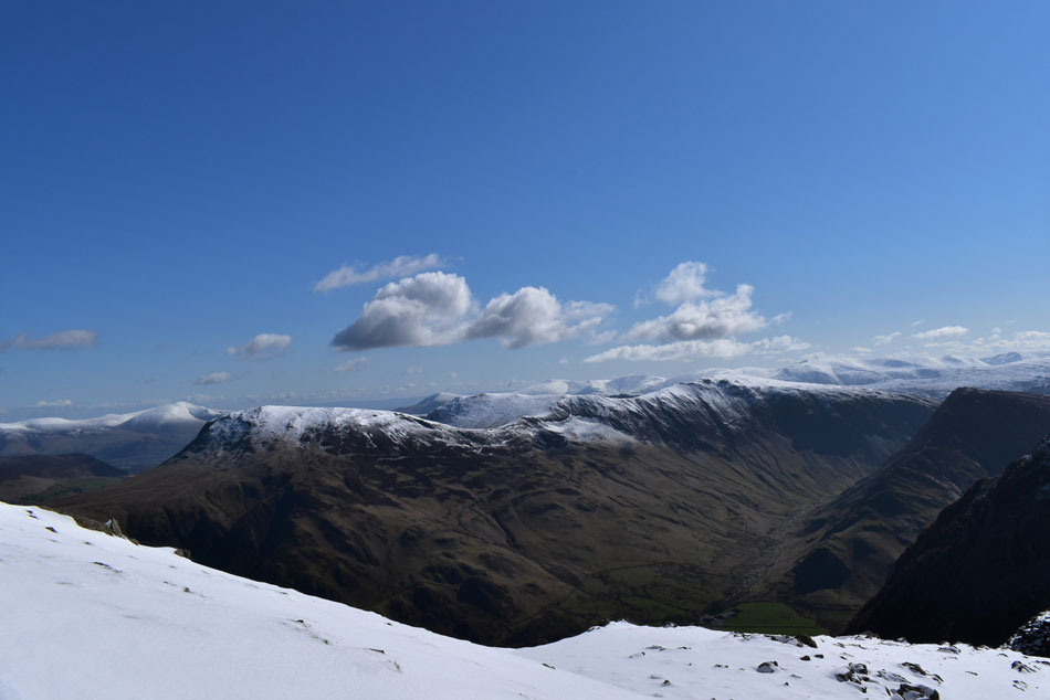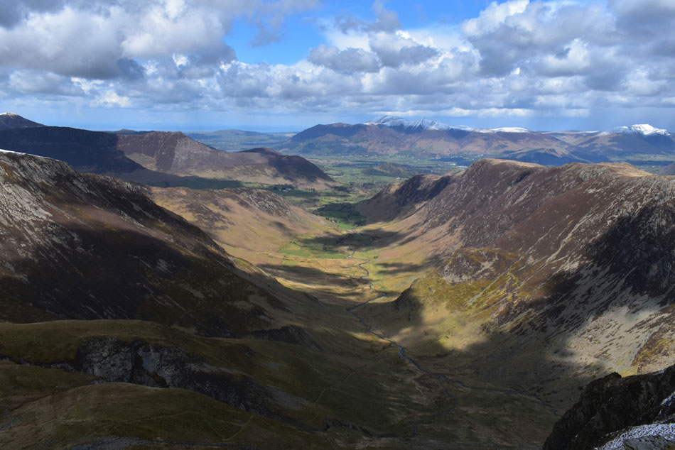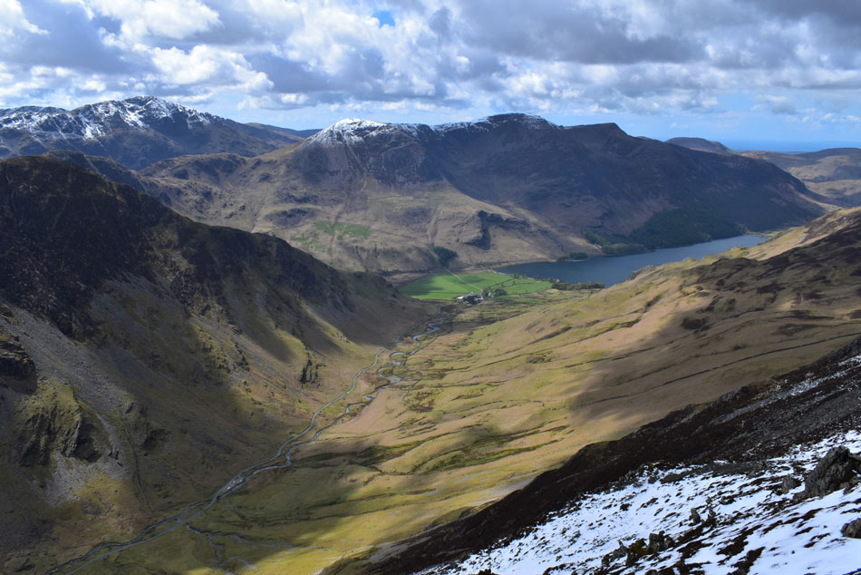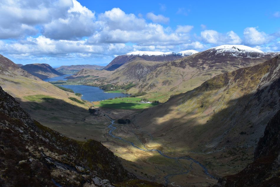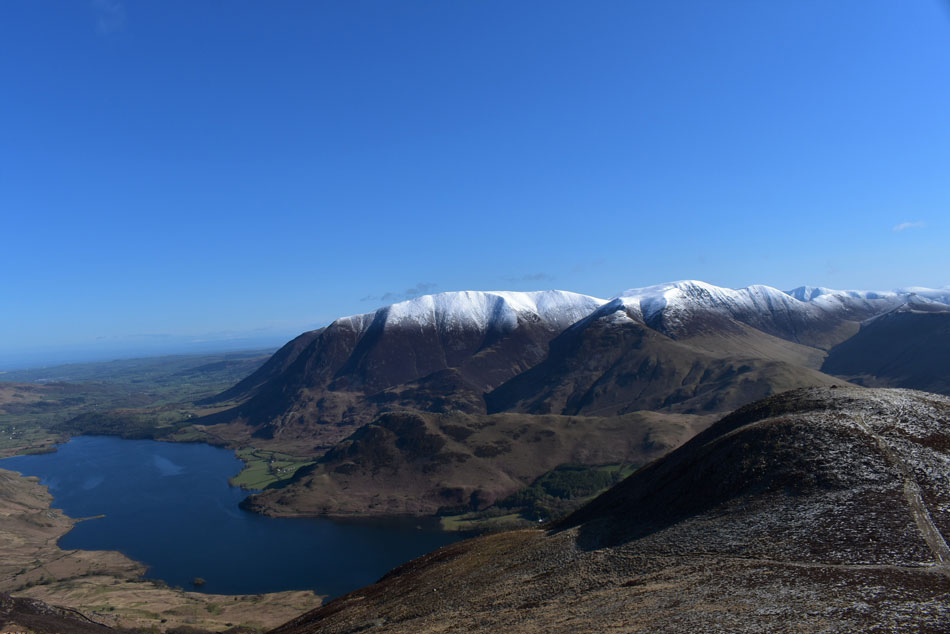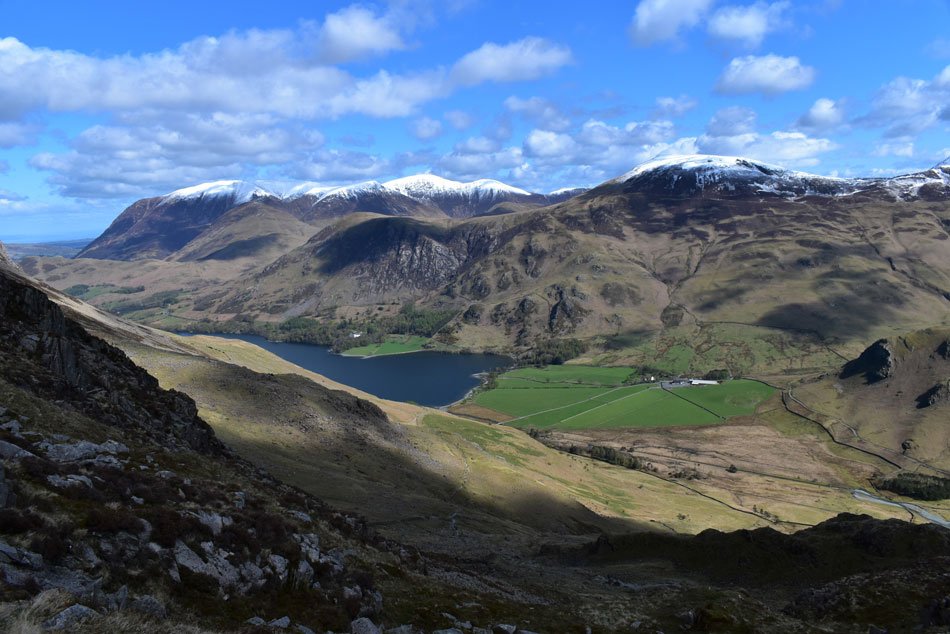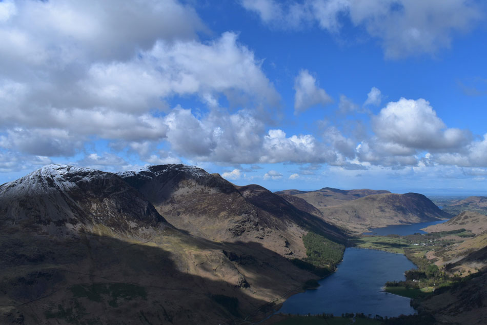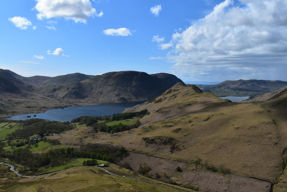 Extended views along the Buttermere valley towards Crummock Water and a distant Low Fell. |