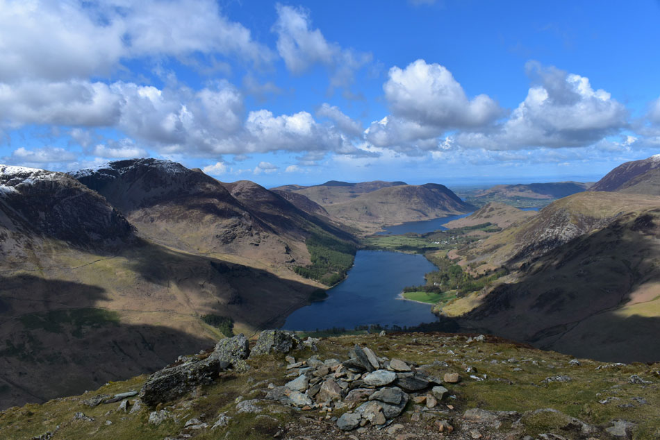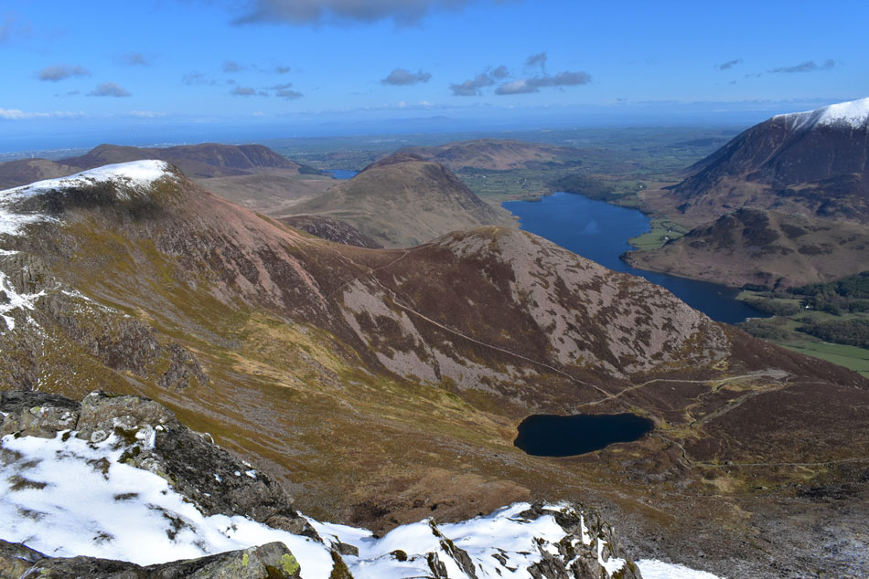 I peer down on Bleaberry Tarn, Red Pike, Mellbreak the Loweswater Fells, Crummock Water, Grasmoor and Rannerdale Knotts. |