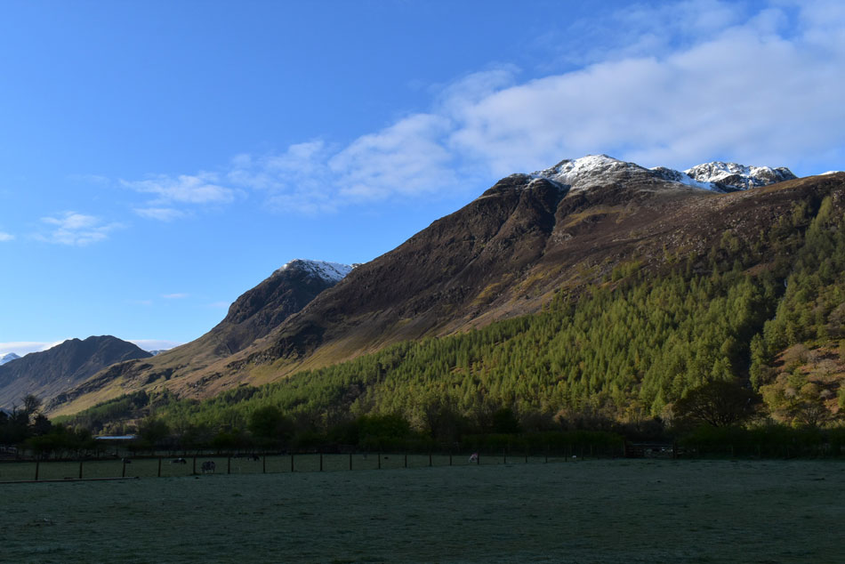 High Crag, High Stile and Red Pike (Buttermere) from the bottom of Newlands Pass 7:15am 2°C |