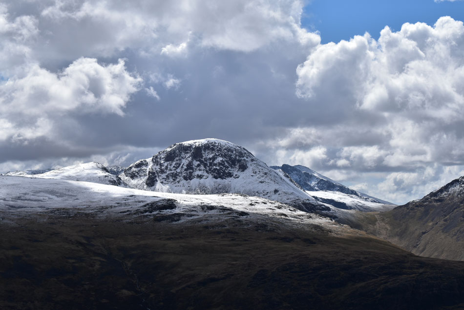 Locking the car I took in the view over the High Stile ridge while butterflies performed somersaults in my stomach. This walk will test me and exceeds the Eskdale Horseshoe in terms of total ascent - the mileage being similar only today, I have a fresh coating of snow across the tops, I had every right to feel nervous but a good nervous at that. |