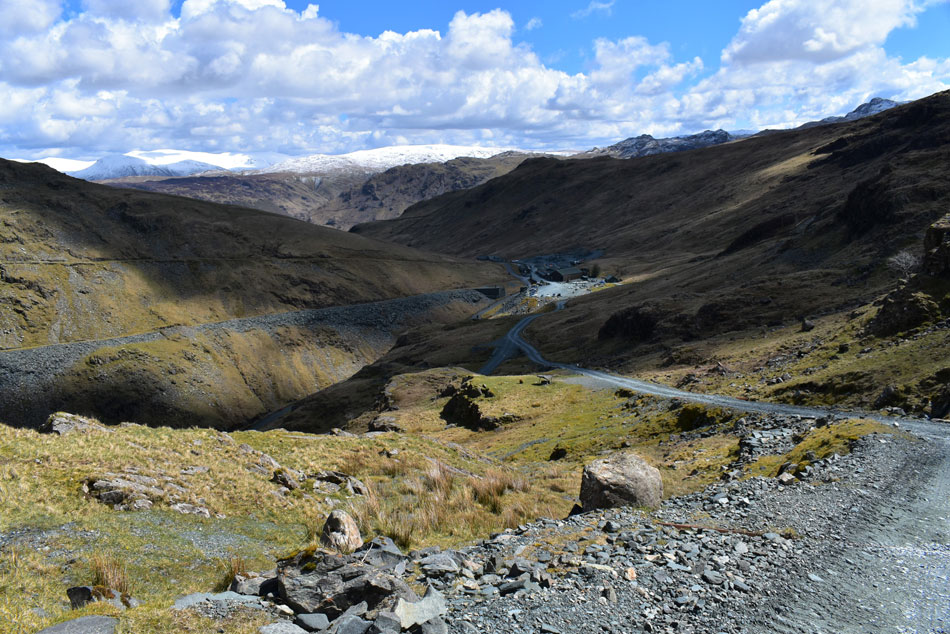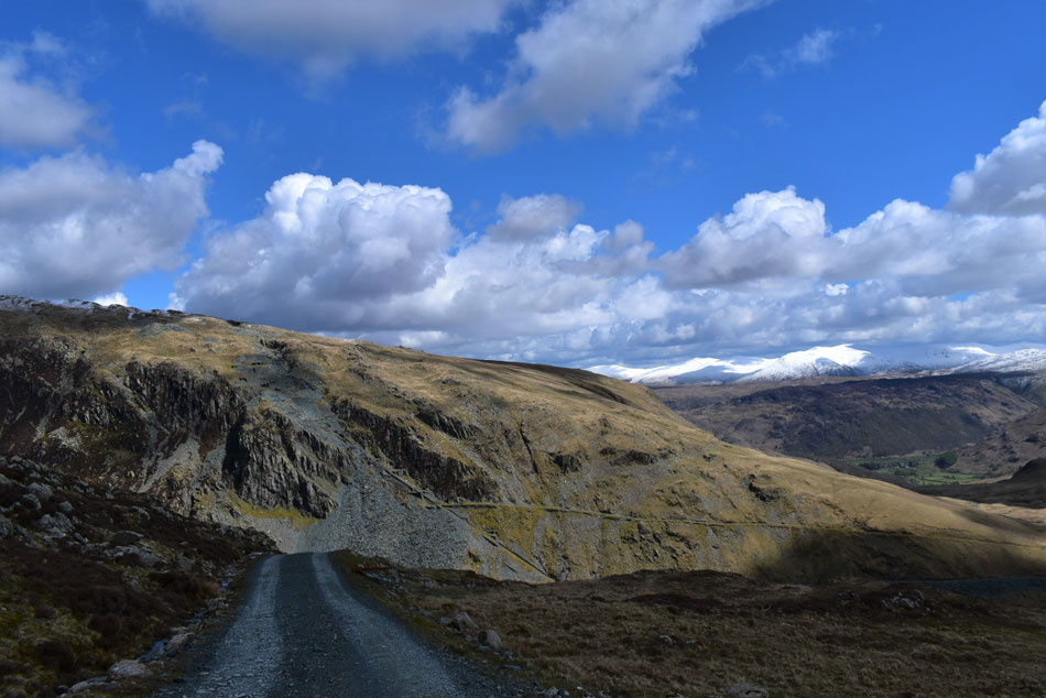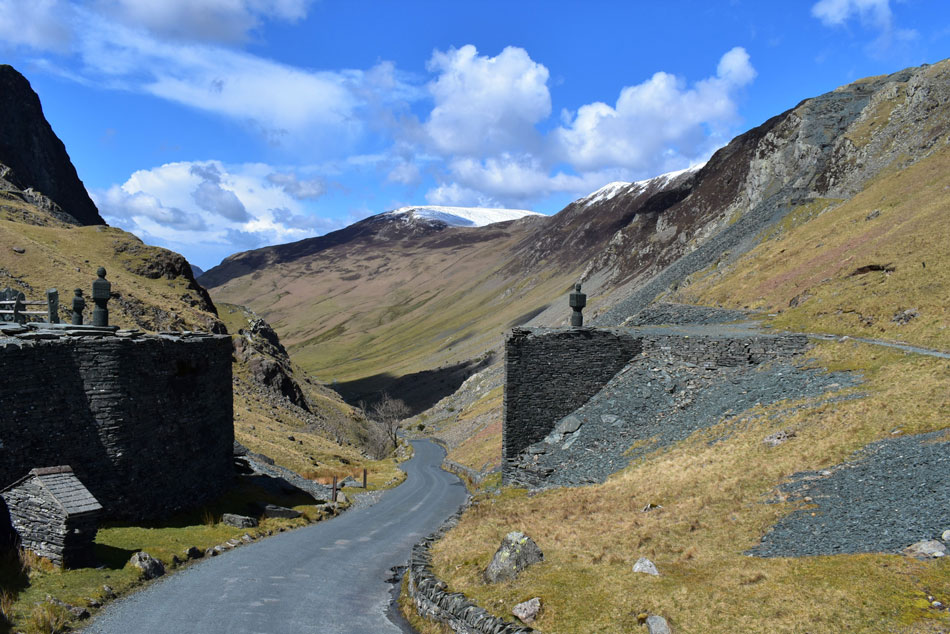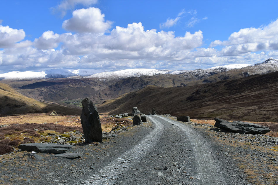 Descending the Honister Mine Track towards Honister Slate Mine. |