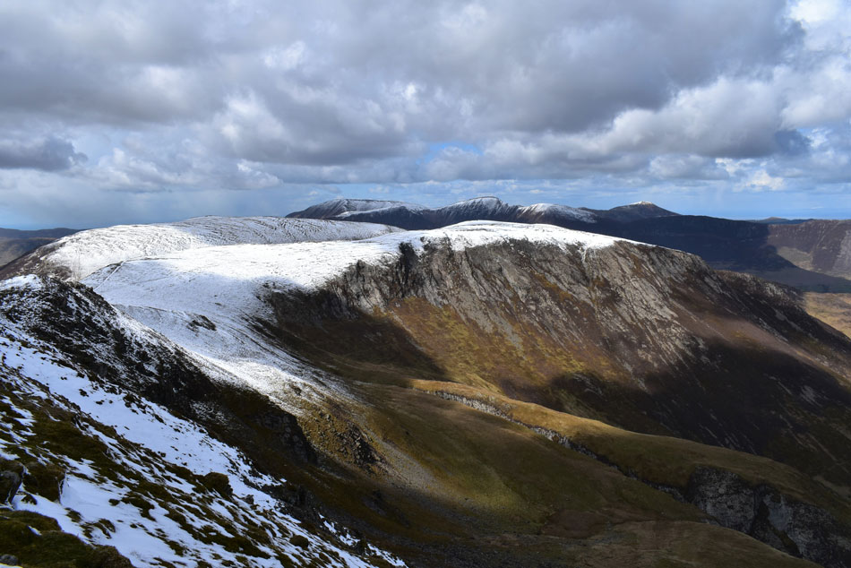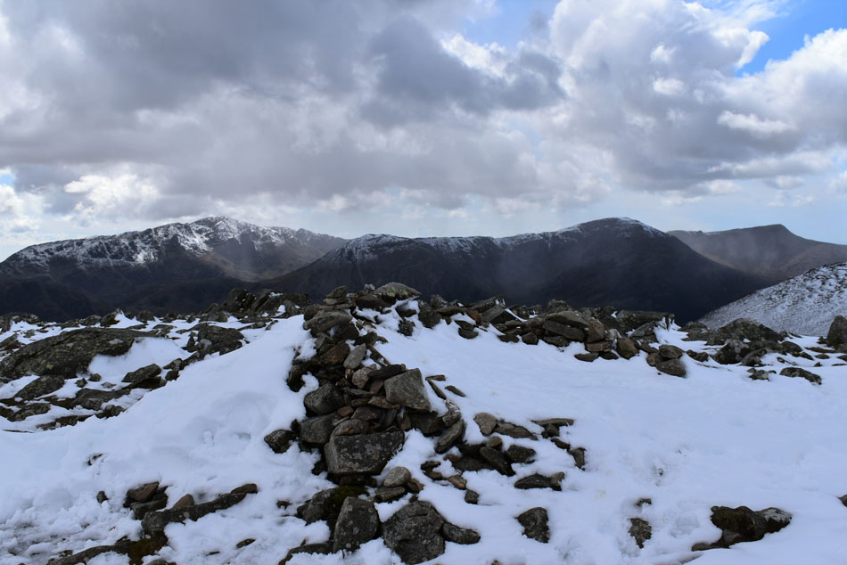 Light snow showers pass over the High Stile ridge seen here from Hindscarth summit. |