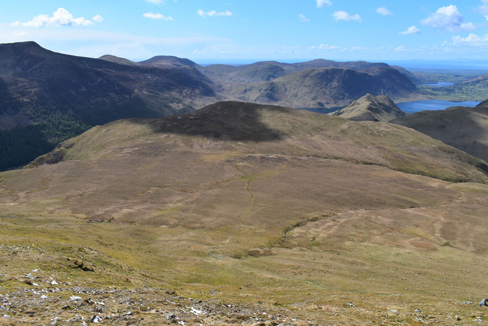 Bearing down on Buttermere Moss and High Snockrigg (top left) from Robinson. |