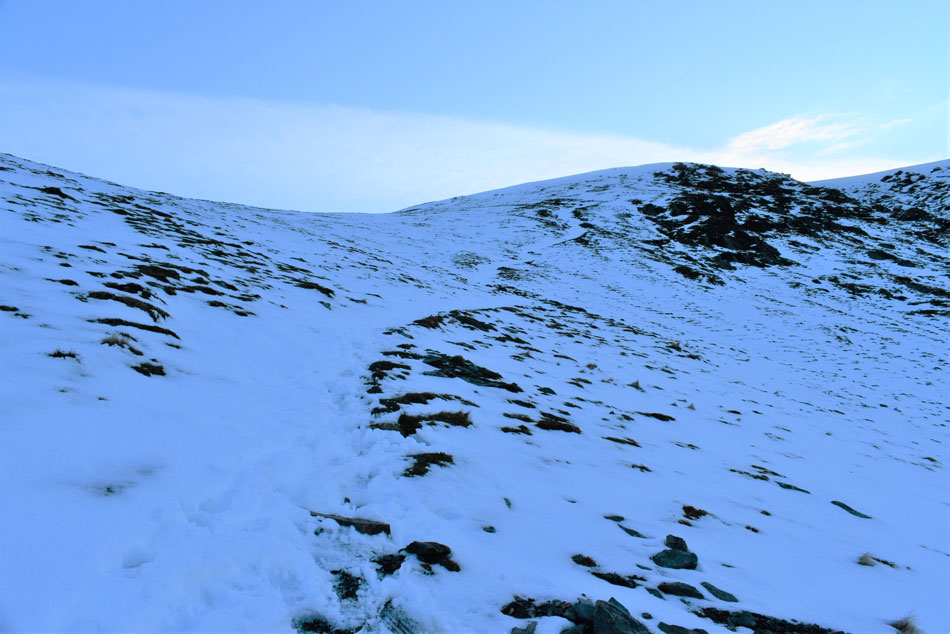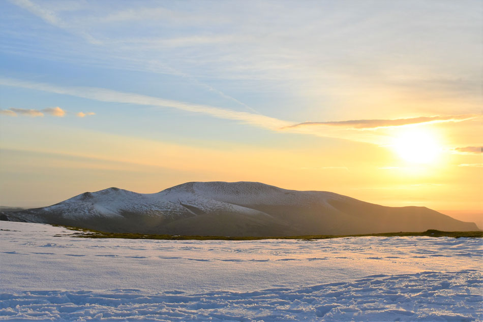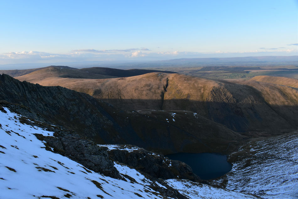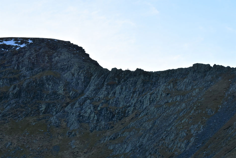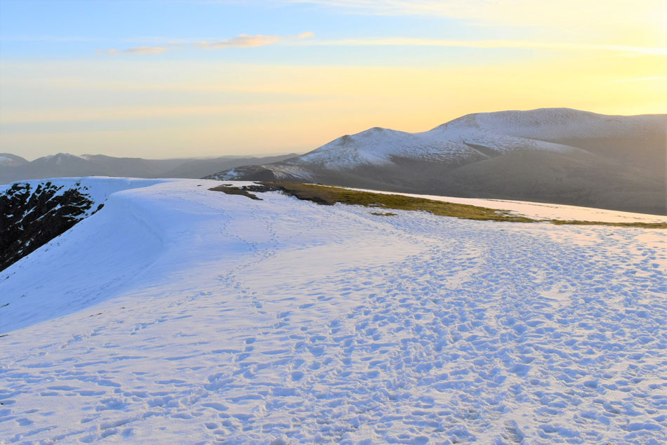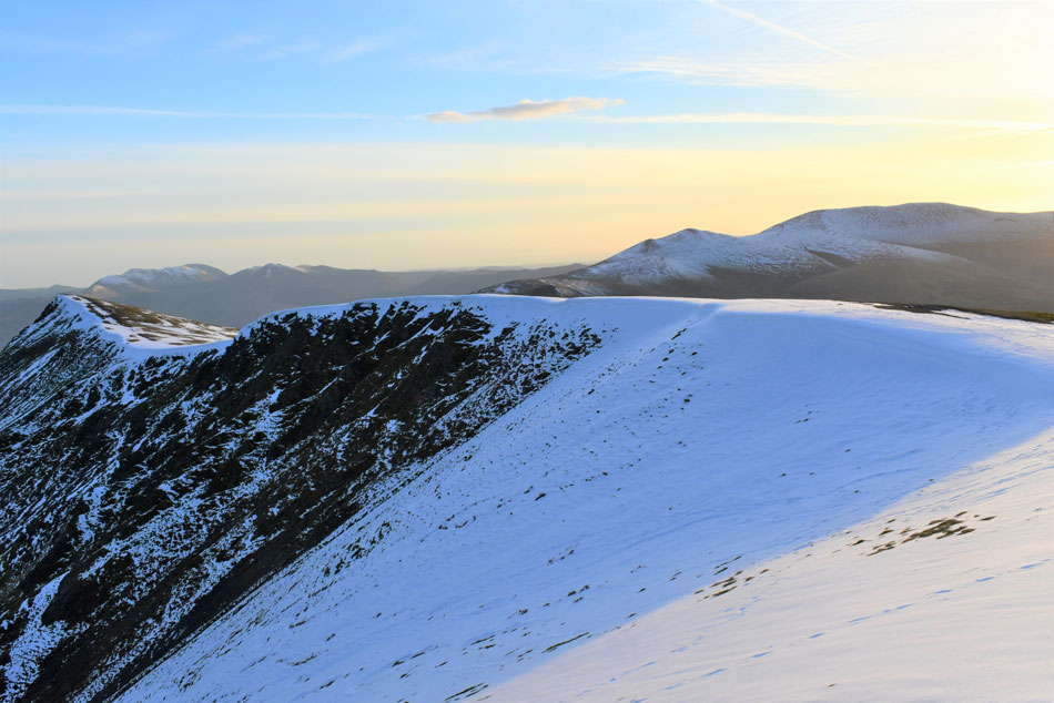 I knew some of Lakelands highest summits had received a blanket of snow given my last outing, in fact while driving home along Newlands Pass on Wednesday I watched a freak blizzard pass over Blencathra then Keswick only adding to the summits accumulation of snow. Today had been a dry day but nowhere near warm enough to start a thaw, the snow was still going to be there which meant I would have to adjust as I went along. |
