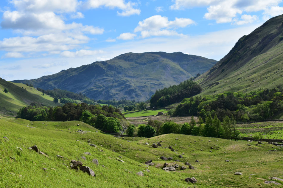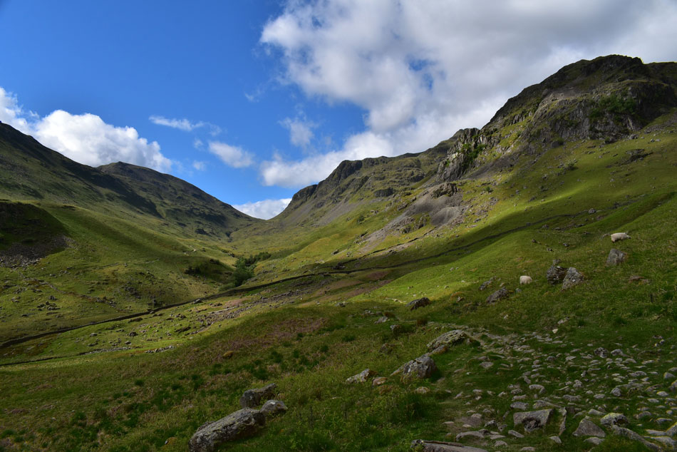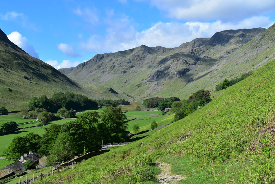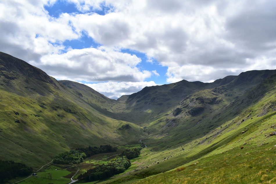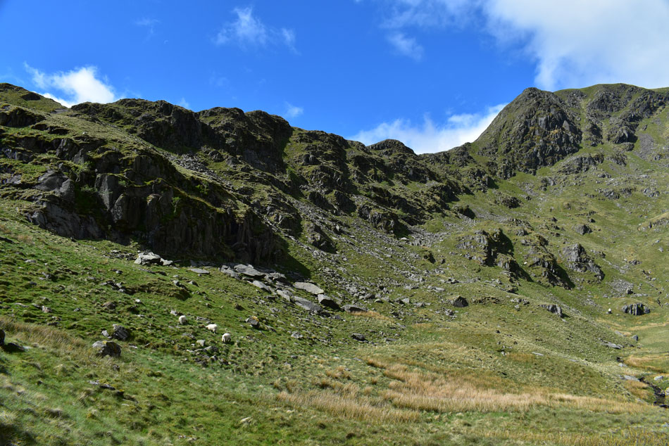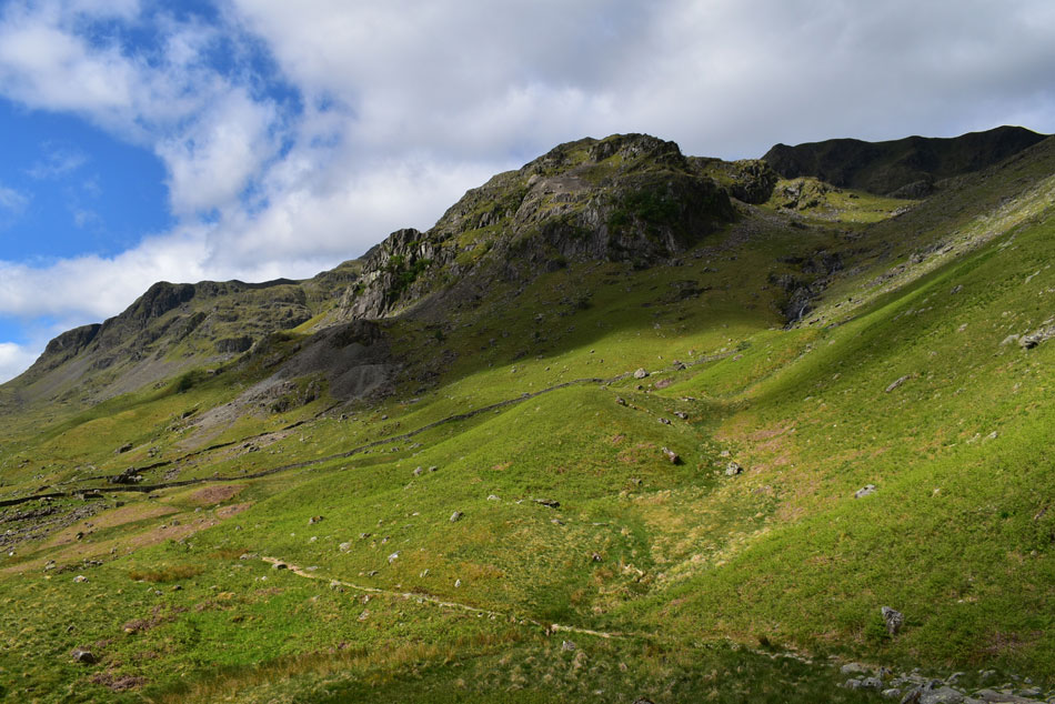 The wall in the foreground is the same wall which forms Hole-in-the-Wall another 1,500ft above the Grisedale valley. |