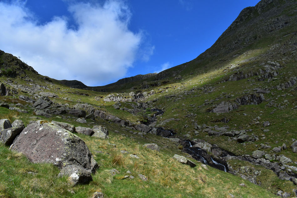My first view of Nethermost Cove appears with Nethermostcove Beck seen to the right. |