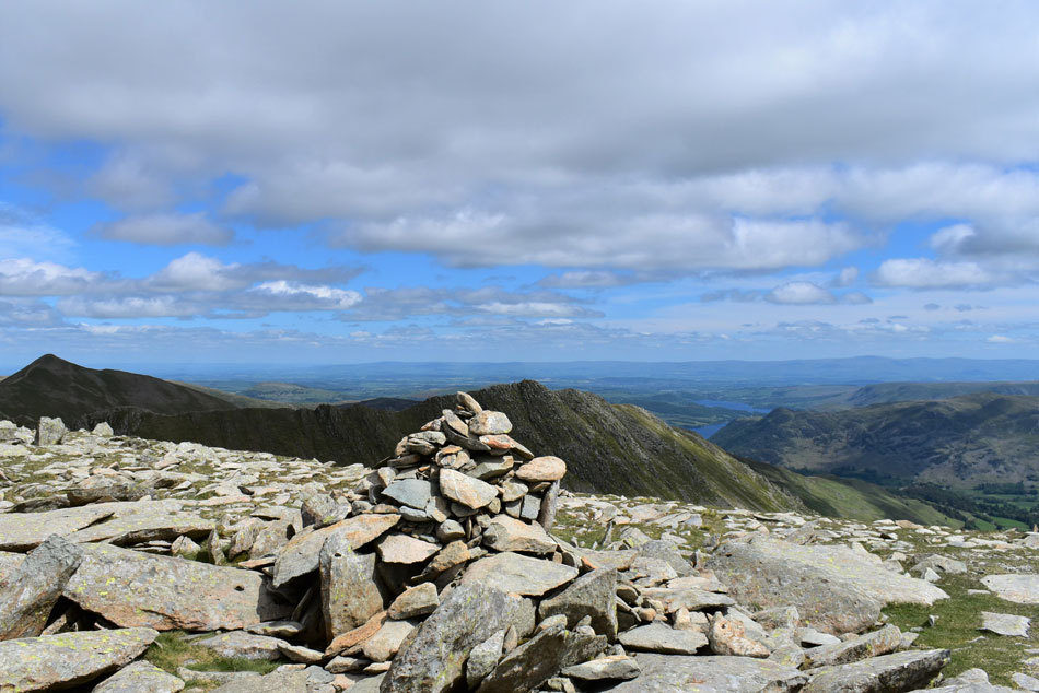 Helvellyn, Catstye Cam and Striding Edge from Nethermost Pike summit. |