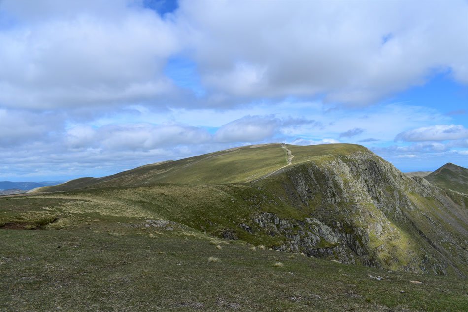 I crested the ridge 'proper' and found that I still had ground to gain in the form of grassy undulations which formed at the end of the ridge which can be outflanked by heading left as I did before rejoining the ridge afterwards. |