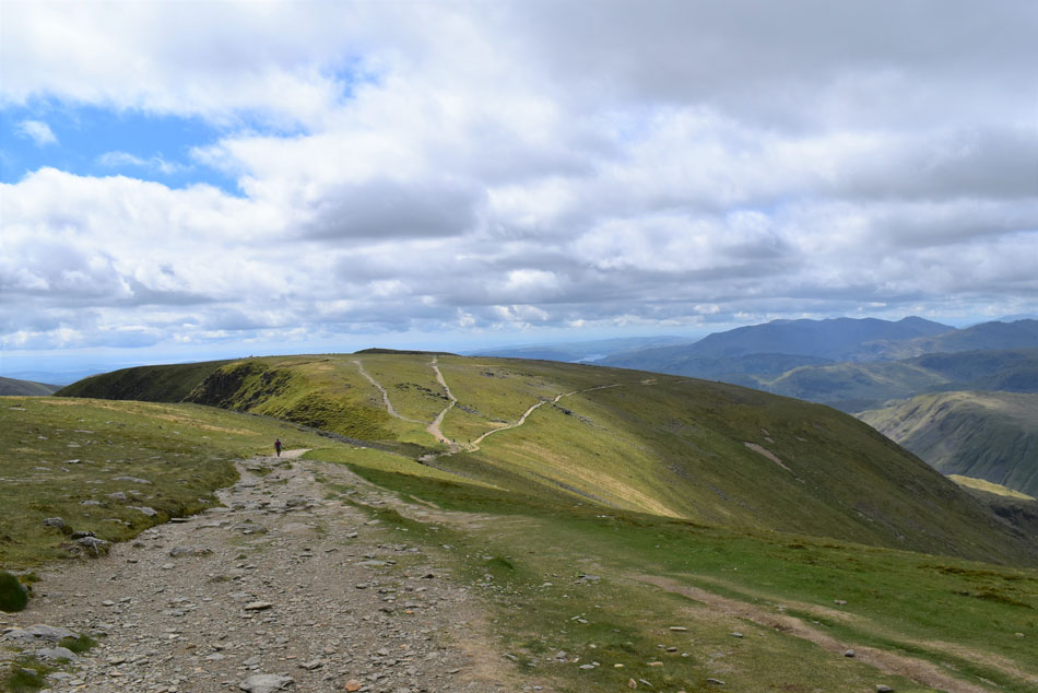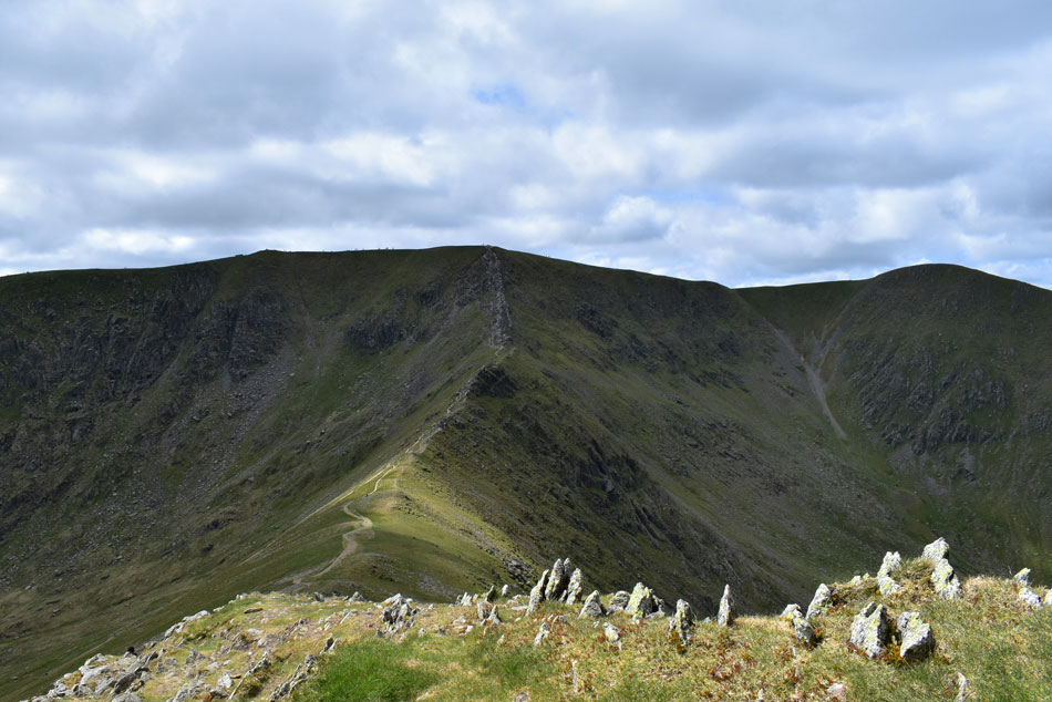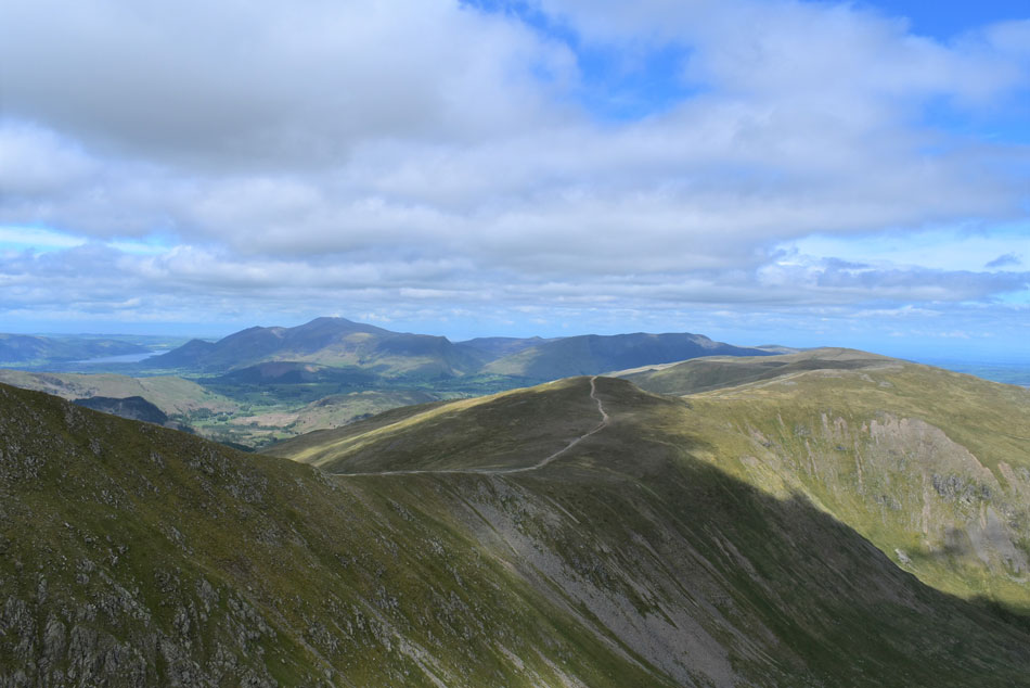 Nethermost Pike East Ridge peak (seen far left) Lad Crag and Helvellyn. |