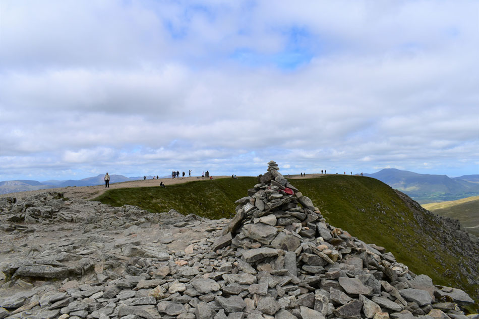 A short grassy col links the east ridge to the summit plateau where adjustments were made to clothing before I walked towards the summit where two walkers had just left in the direction on Black Crag. For a few moments I took in the view then added a pair of sunglasses as the wind was quite strong and left for the final plod up Helvellyn. |