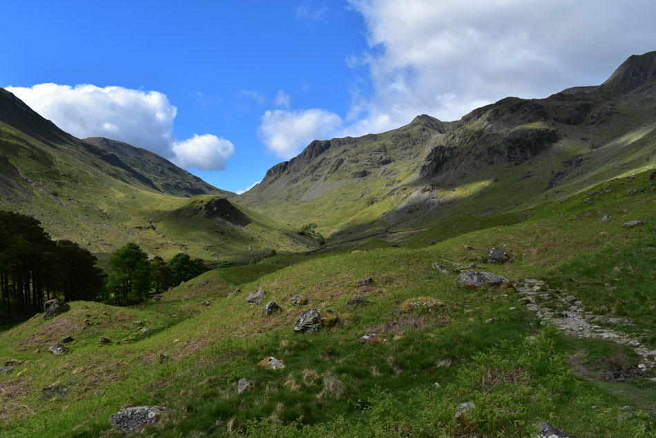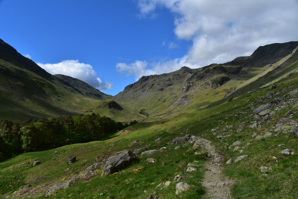 After crossing the Footbridge over Grisedale Beck I pick up the start of the footpath which will eventually flank Eagle Crag to my left. Nethermostcove Beck is just out of shot on the right. |