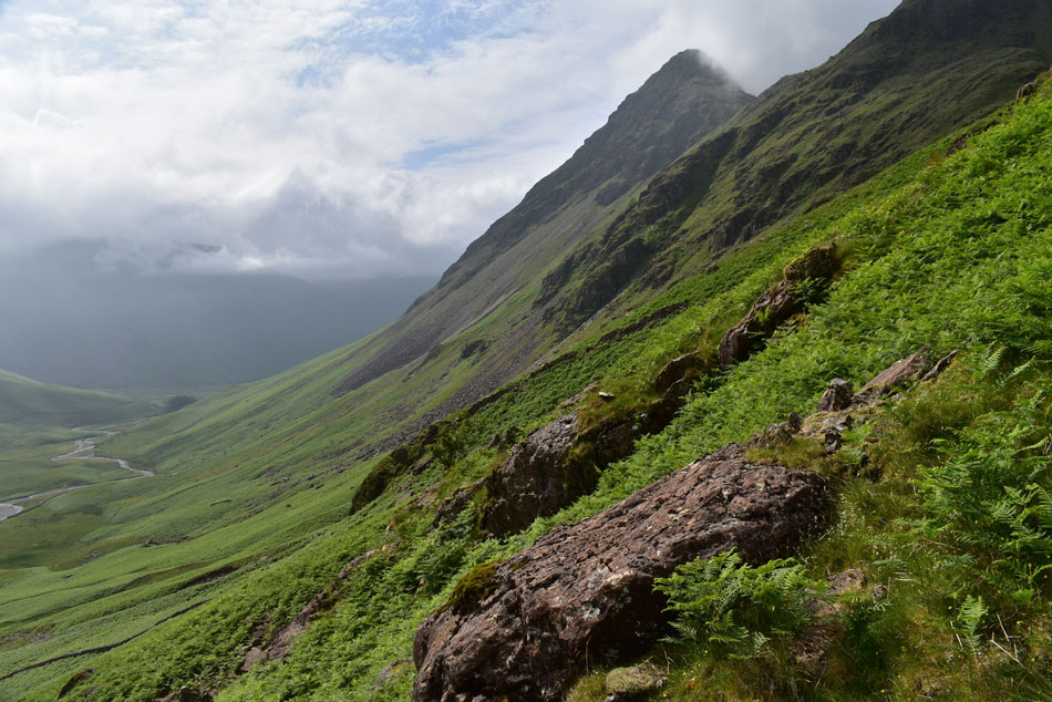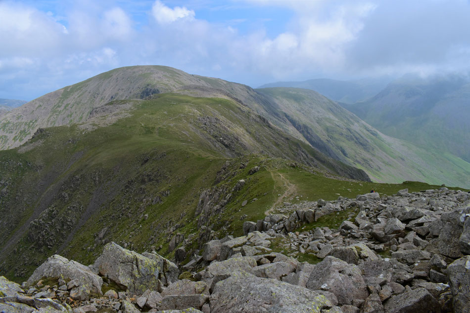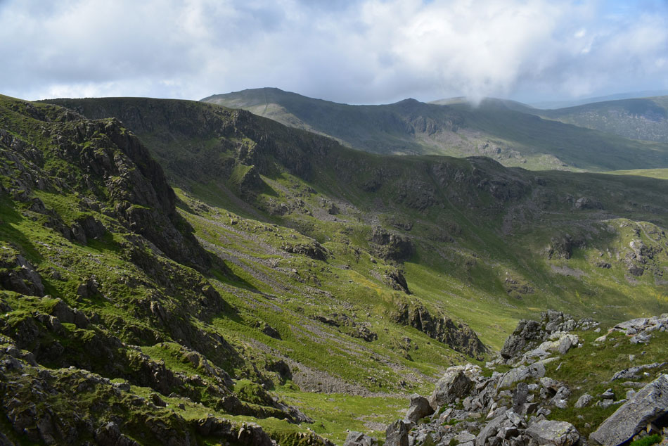 Looking down over the first false summit into Mosedale. |