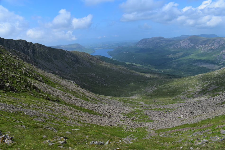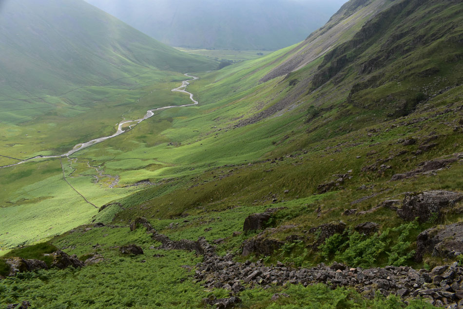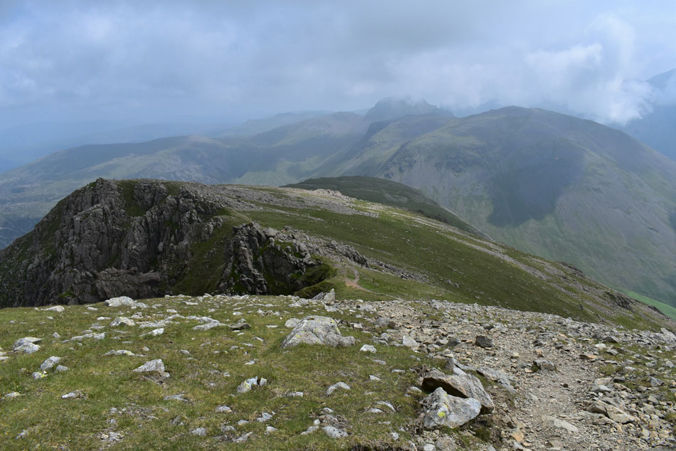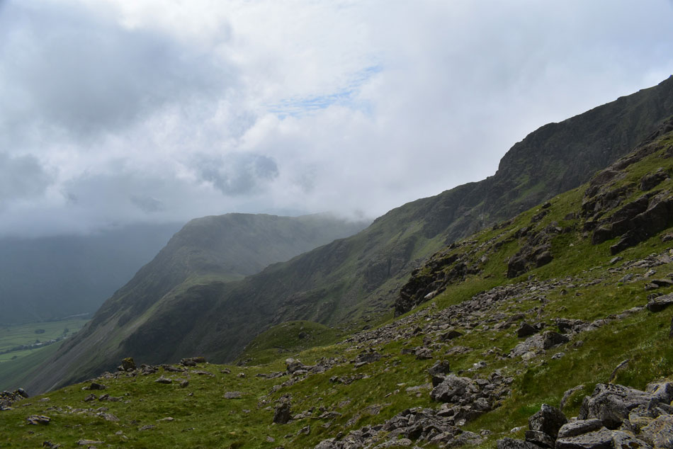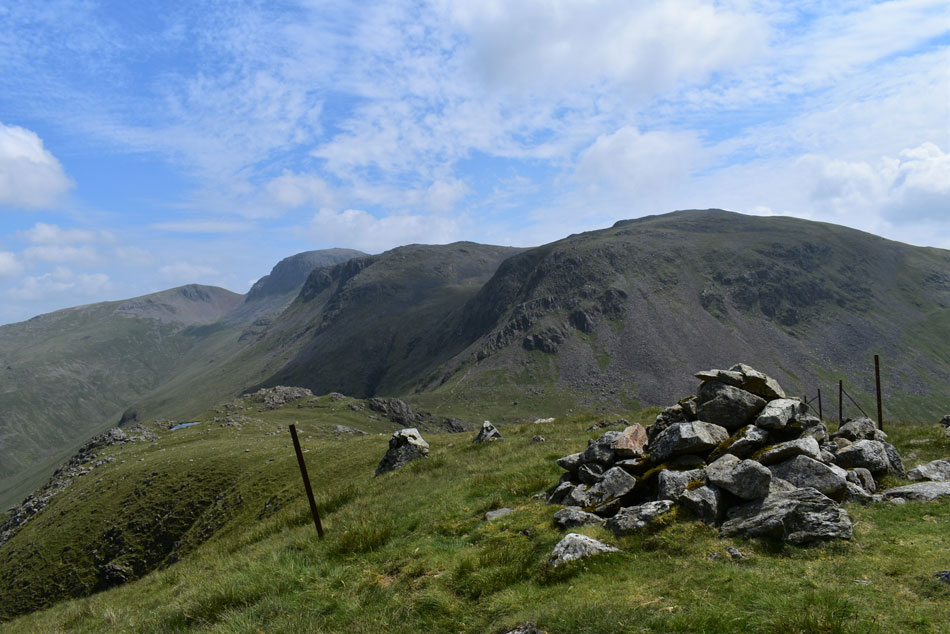 With hazy views of Kirk Fell, Great Gable, Green Gable and Brandreth. |