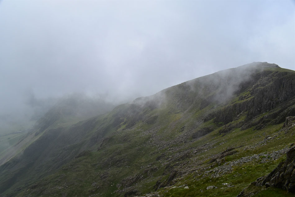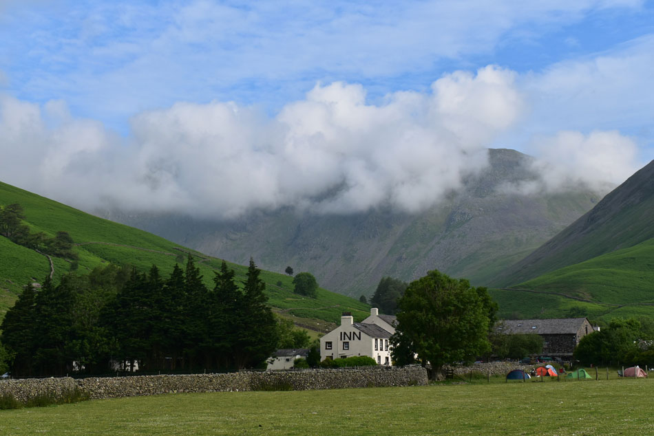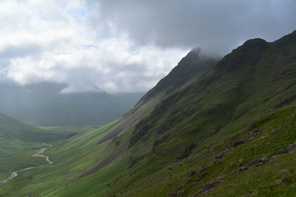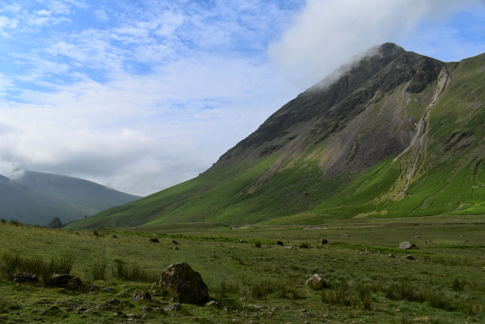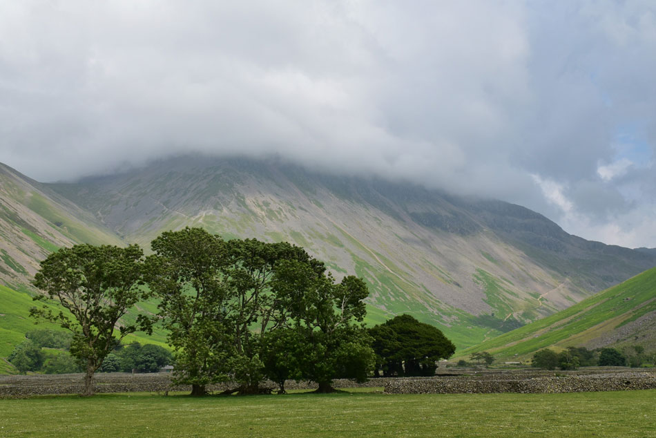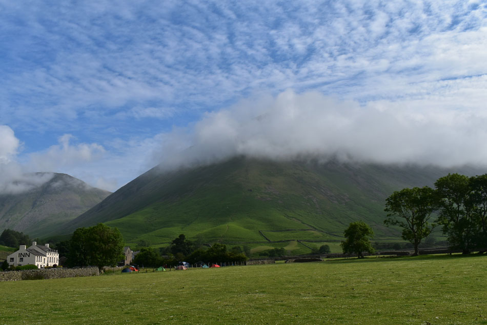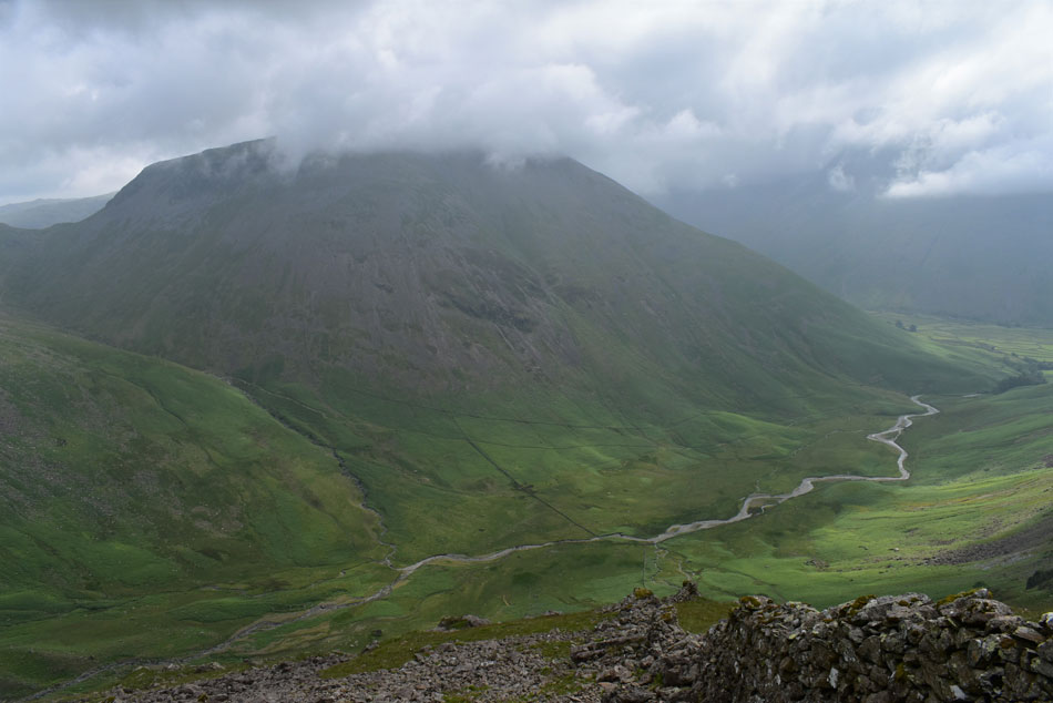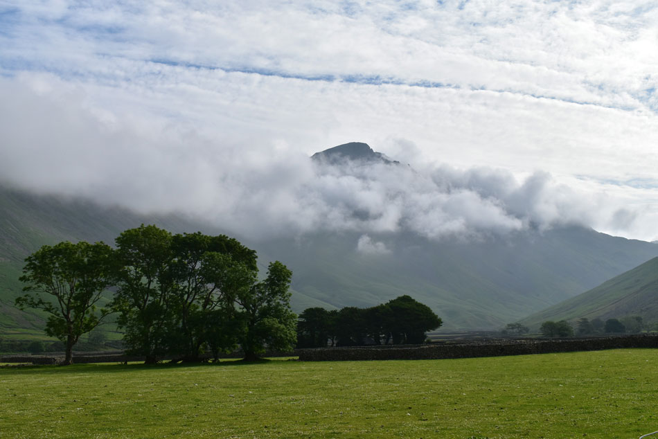 Cloud has gathered over Great Gable once again. |
