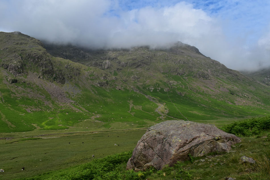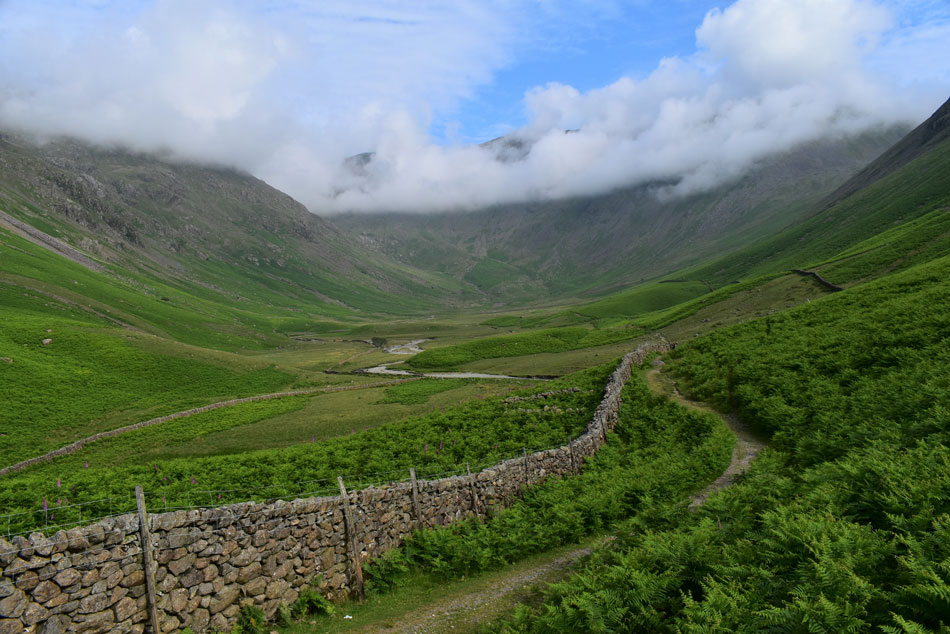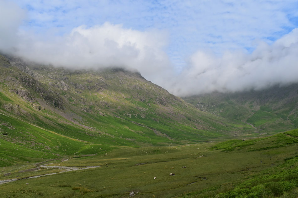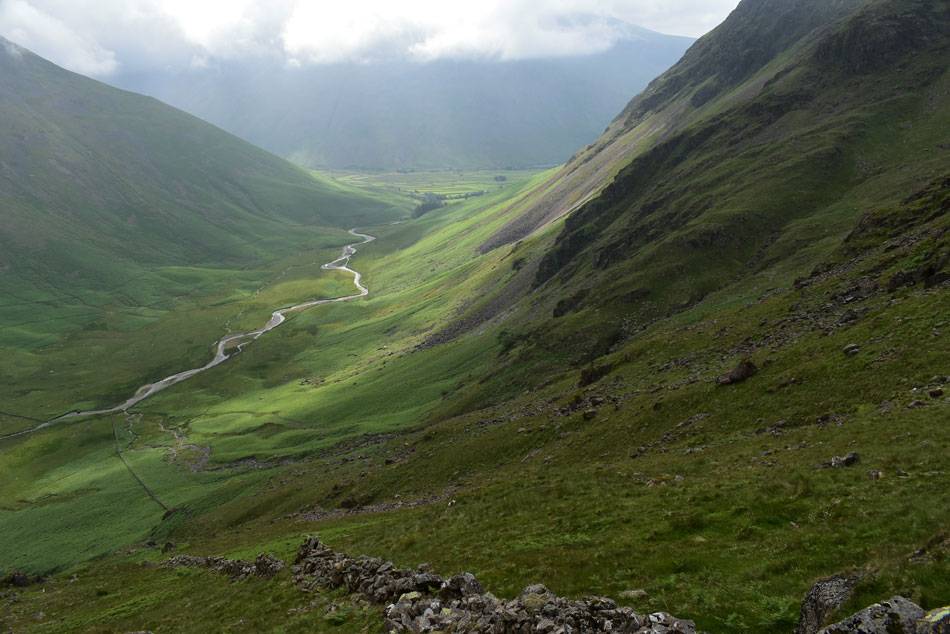 With Mosedale and a cloud topped Kirk Fell beyond. |