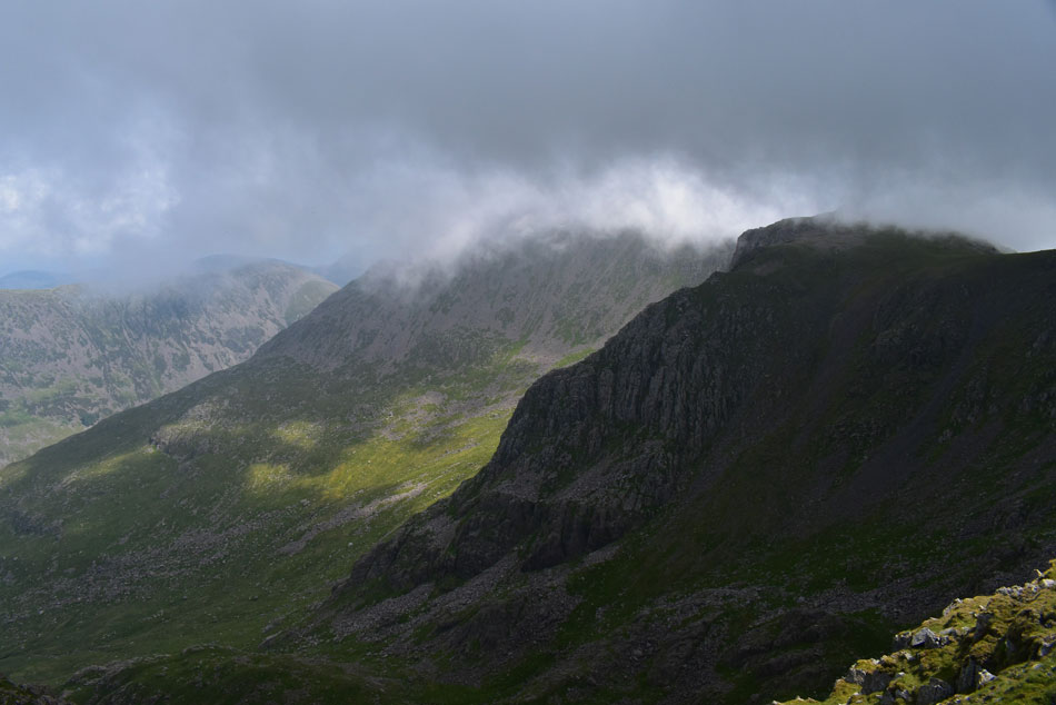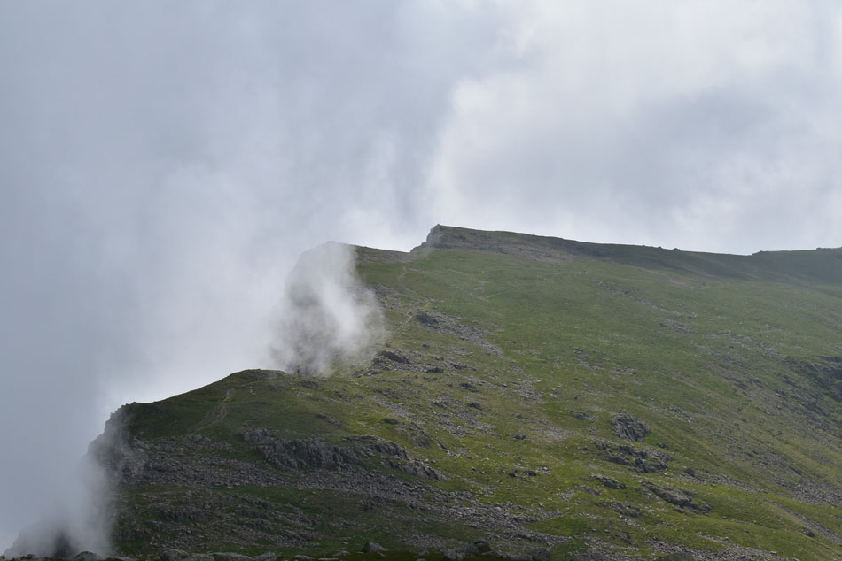 Having descended Red Pike I picked a direct line for Steeple on the other side of the ridge while being treated to this wonderful cloud display which curled up over the head of Black Comb. |