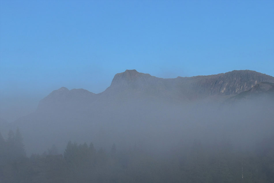 The Langdale Pikes poking out above the valley mist 08:12am |