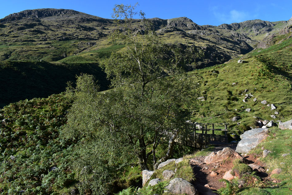 Wainwright describes the ascent of Hell Gill as an alternative to that of the Band but I feel it's much more than that, it's a rugged wild place with rock scenery and waterfalls that would equal any walk above Seathwaite yet the walker is gripped by the solitude of the place all the while 300ft above your head walkers make their pilgrimage to Three Tarns while in the expanse below Shelter Crags the walker ascends unseen towards the same goal. |
