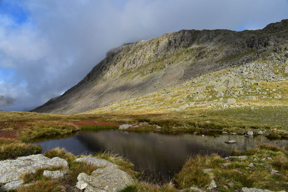 Three Tarns were all visible but the centre tarn has to be my favourite given its magnificent views. By now that 'morning nip' had turned into a bit of a chill so off came my pack and on went my jacket.