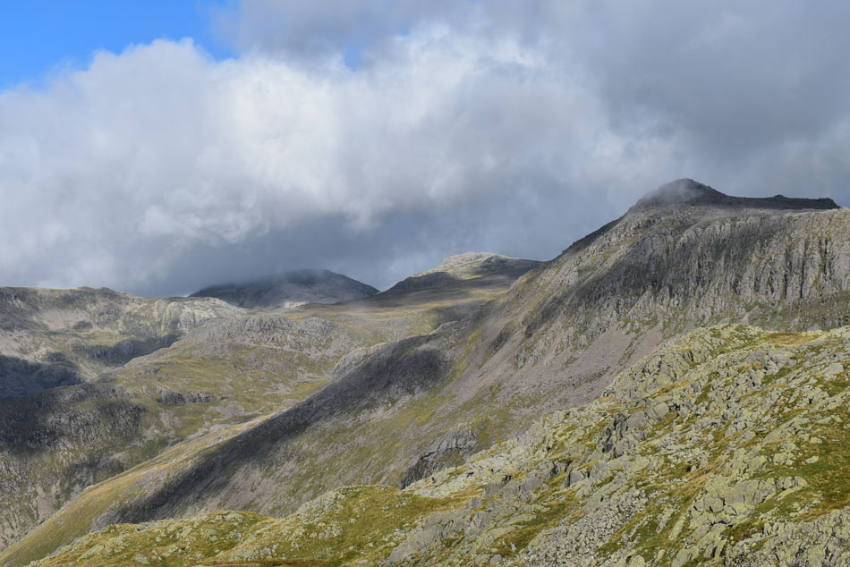 Cam Spout Crag, Sca Fell, Mickledoor, Scafell Pike and Broad Crag. |