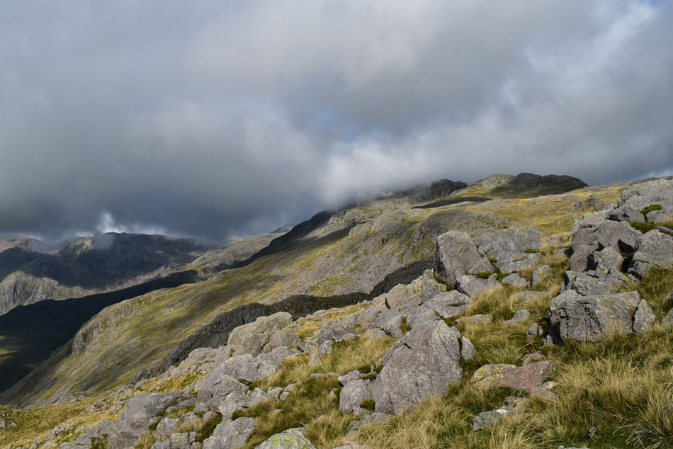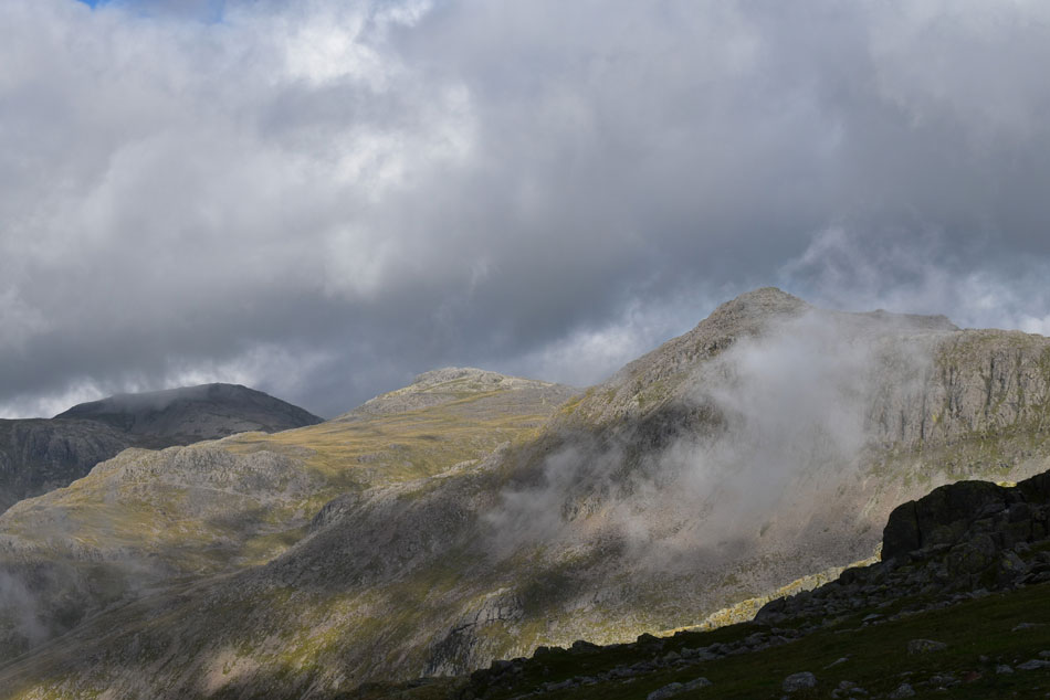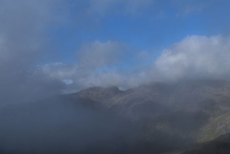 The same cloud is starting to drift over towards Bow Fell and the Crinkles. |