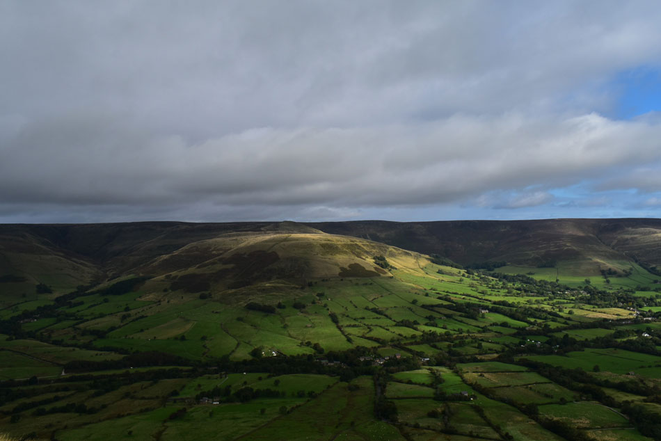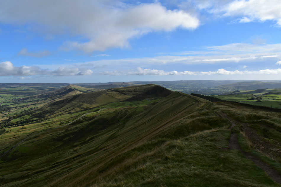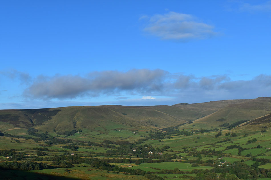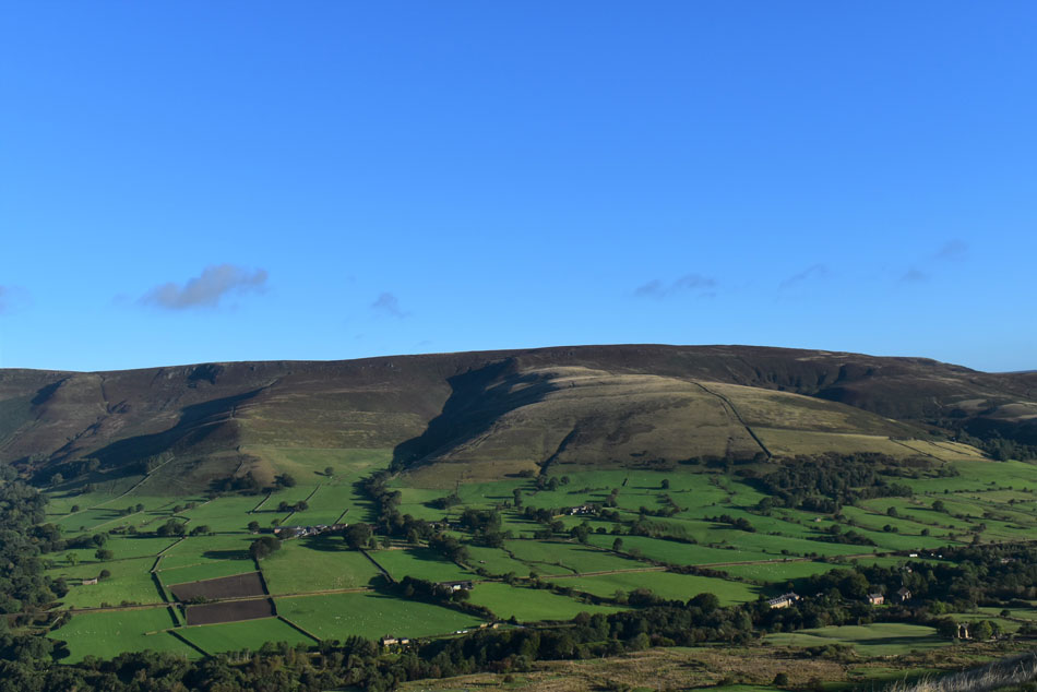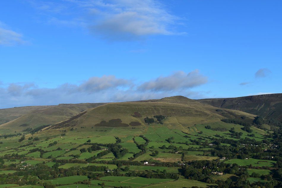 Distant views of Rushup Edge, Brown Knoll, Swine's Back and Kinder Low. |