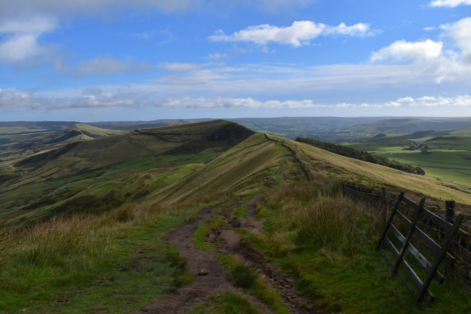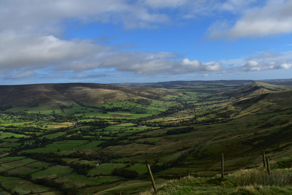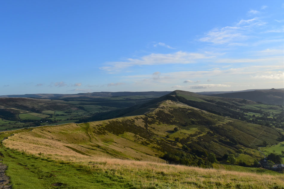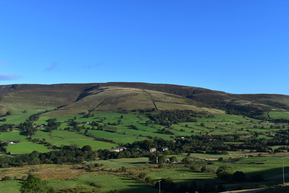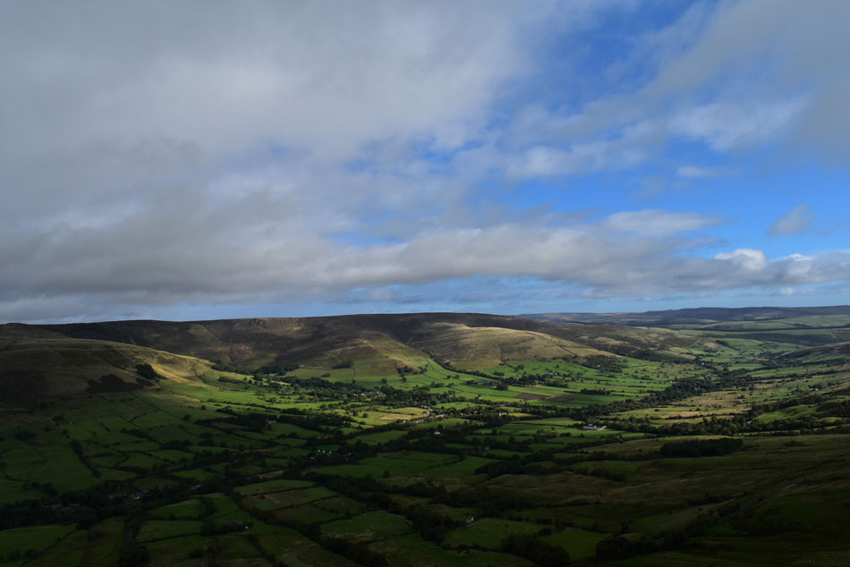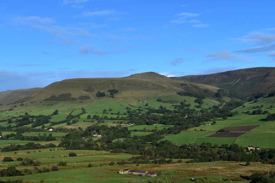 Distant views of Rushup Edge, Brown Knoll, Swine's Back and Kinder Low. |