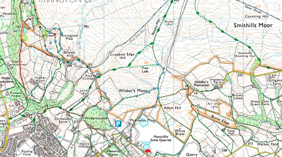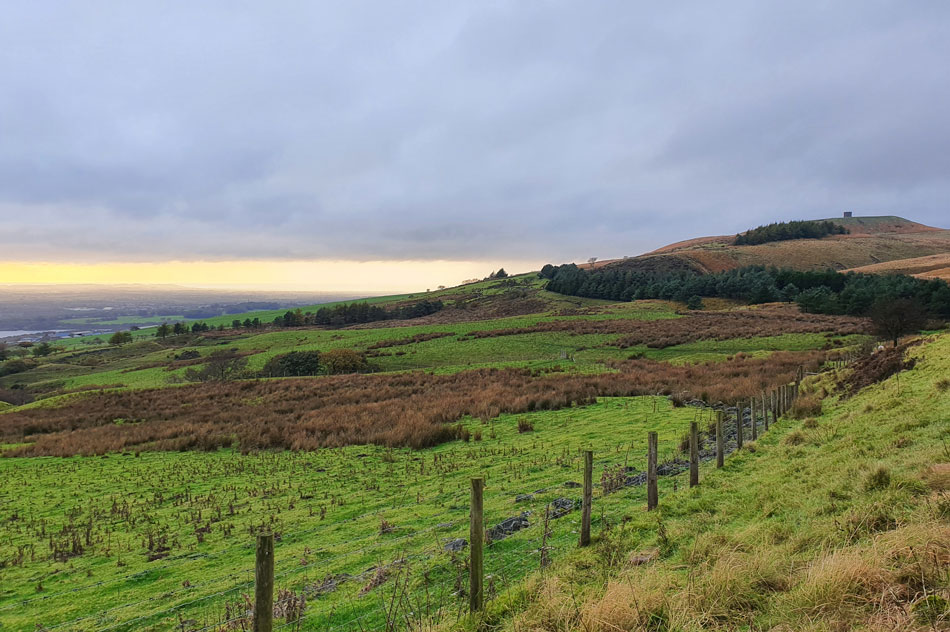 For sometime I've been meaning to do a short sunset walk from Georges Lane, over Rivington Pike then using the last of the days light I would hike to Two Lads summit to see the red aircraft warning lights on the Winter Hill mast, why you might ask...because I can be a right geek when I want to be. The hike over the moorland is only a twenty minute walk from Wilderswood but it would be irresponsible not to take a head torch given how quickly it goes dark at this time of year.
