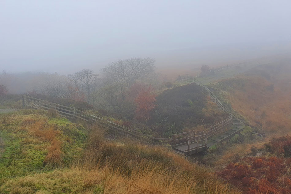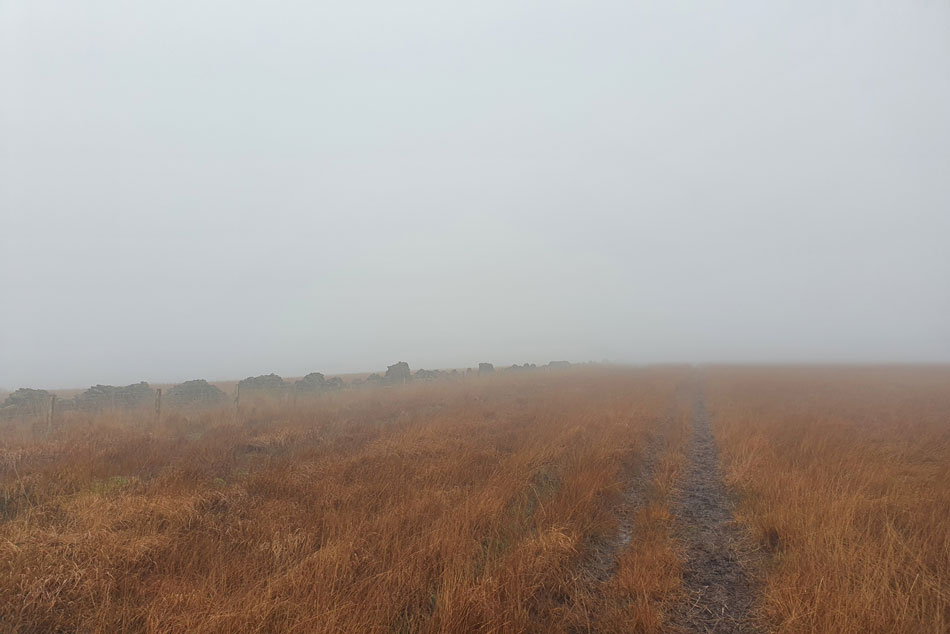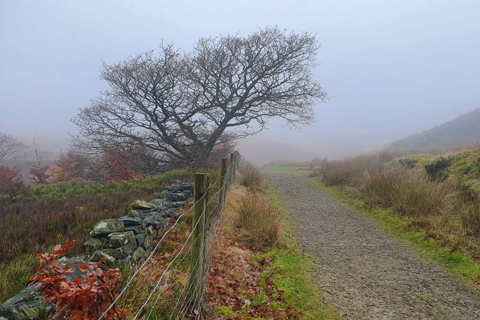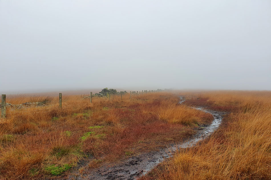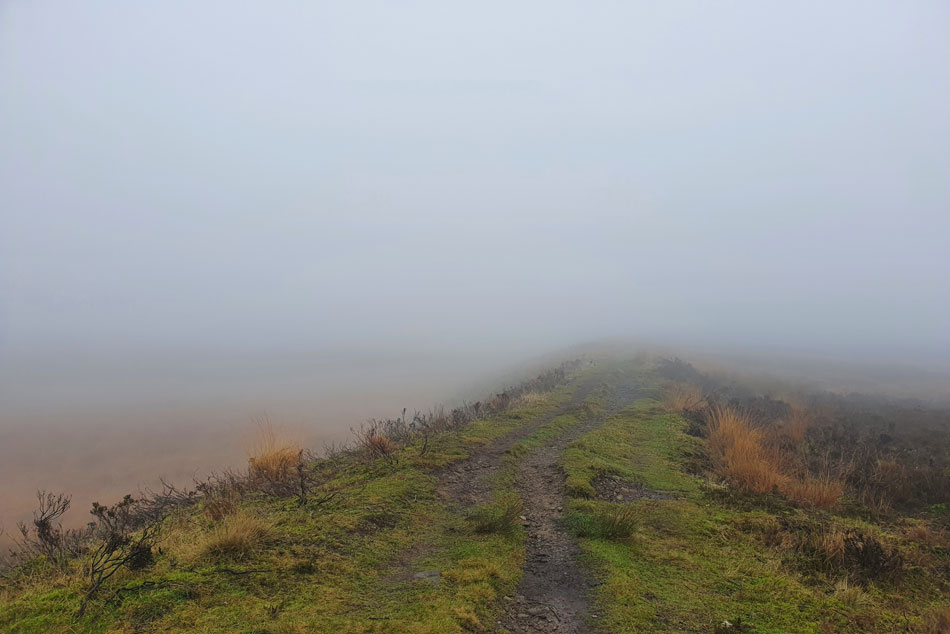 I'm not good at the best of times at staying in the house I need to keep myself occupied hence why I chose to walk this afternoon in visibility so low at times I was unable to see the end of my nose but being outside for me helps and the low cloud, well, that actually made the walk and enabled me to do some thinking while slurping over the moorland. |