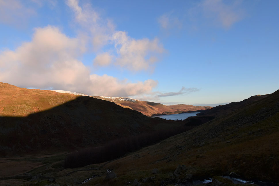 After a dry Summer which extended into Autumn the water level at Haweswater was down to an all time low so much so you could actually walk around the Rigg and visit Wood Howe island without getting your feet wet which thankfully is back to normal levels as are the becks after recent rains which could be heard well before they were seen.