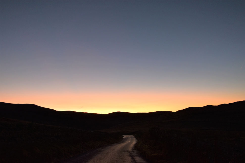 As I drove along the A591 towards Ings a fiery afterglow was illuminating my rear view mirror trouble was my view was obscured until I climbed higher along the Kirkstone Pass where I pulled into a lay by to take this photo. If you look left that's heading towards Yoke while right is towards Sallows. |