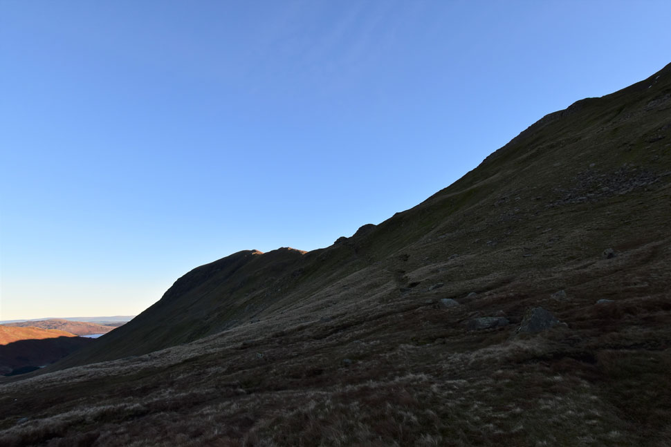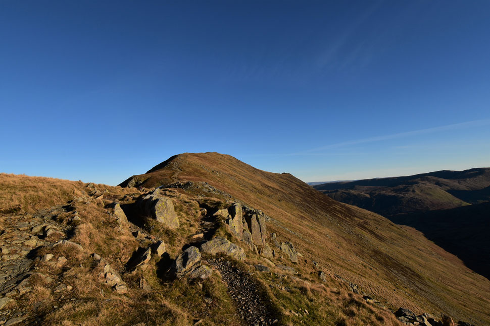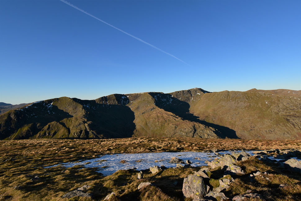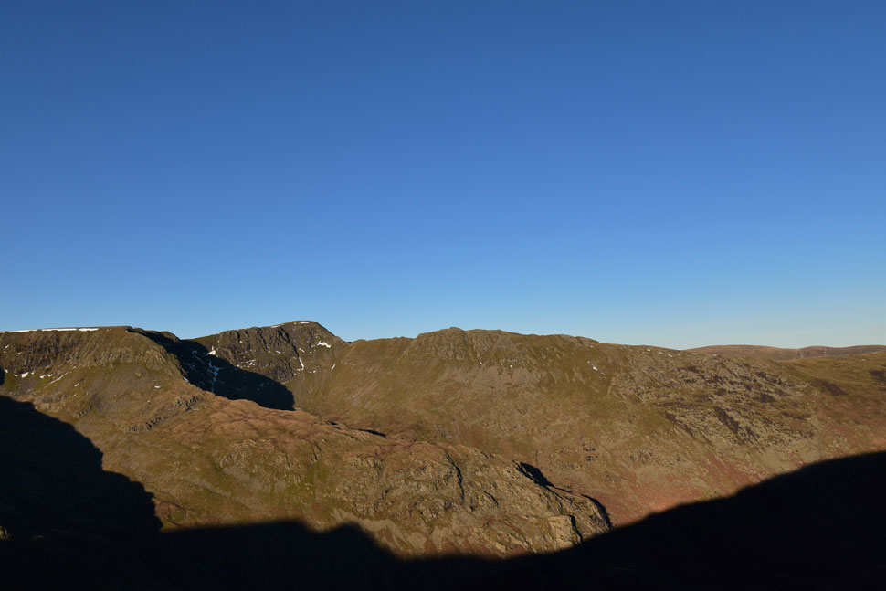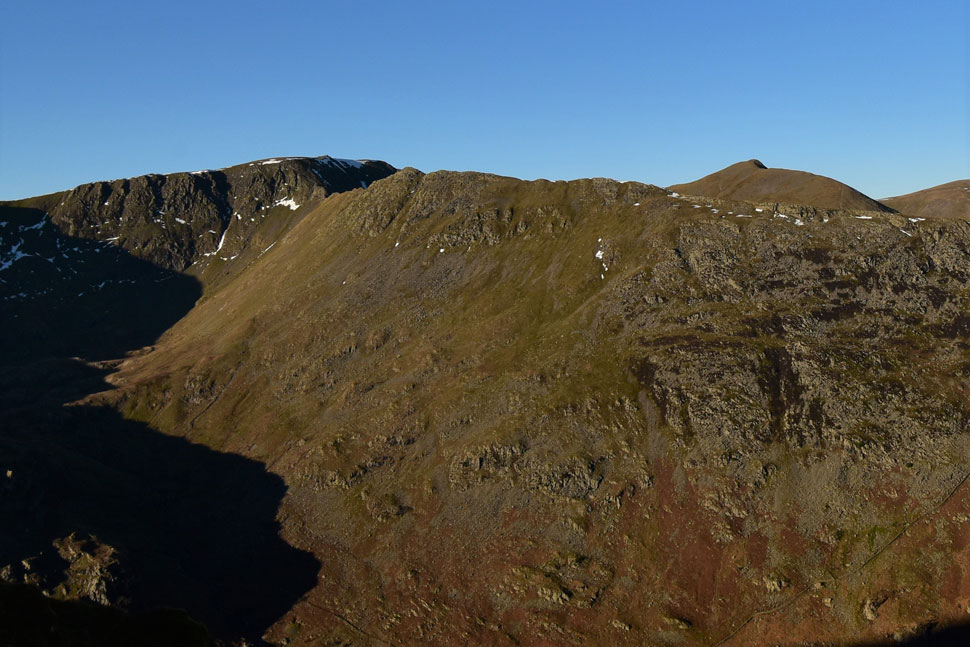 While Nethermost Pike summit lies towards the right the top of Nethermost Pike east ridge can be seen as the pointy bit over on the left. |