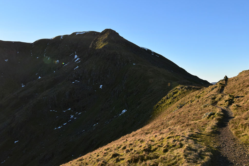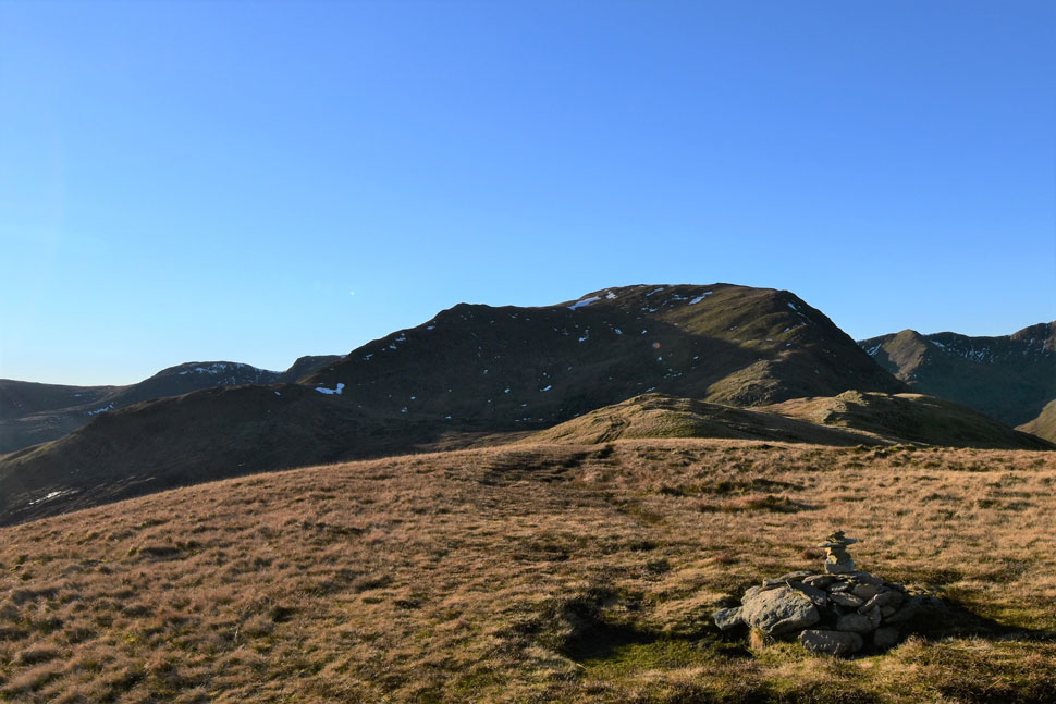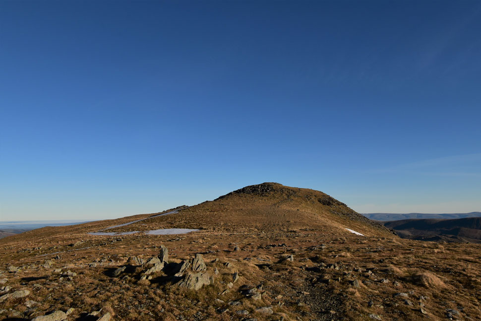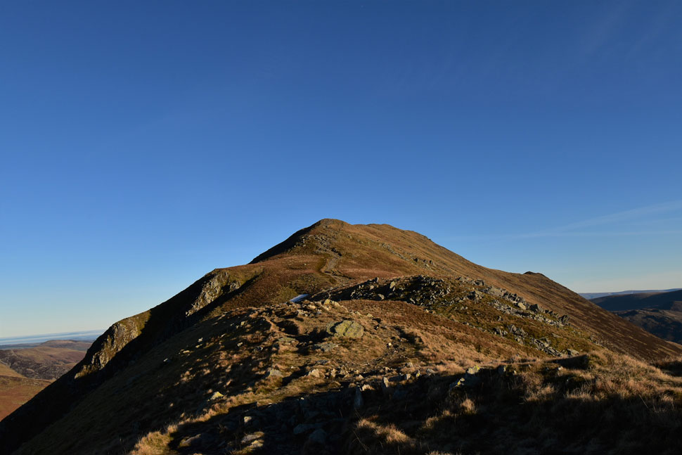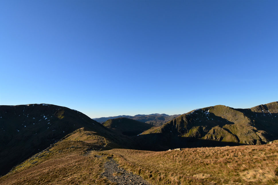 While Nethermost Pike summit lies towards the right the top of Nethermost Pike east ridge can be seen as the pointy bit over on the left. |