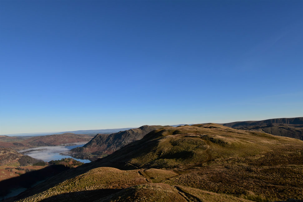 The initial plan was to descend to Gavel Pike then descend further onto Birks but I somehow managed to catch a glimpse of a slowly retreating inversion over Ullswater so I changed my mind and instead made a direct descent while taking in this stunning view as the inversion began to peel away. |