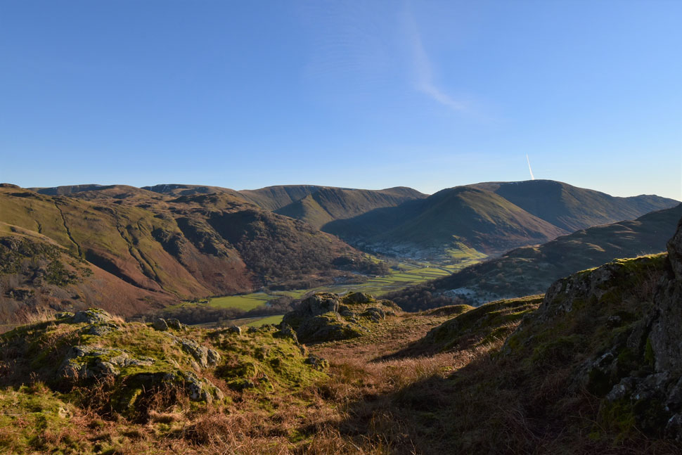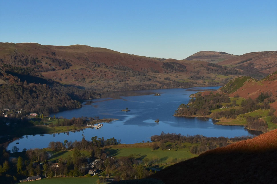 Birks, Place Fell, Glenridding Dodd, Gowbarrow Fell and Ullswater from St Sunday Crag. |
