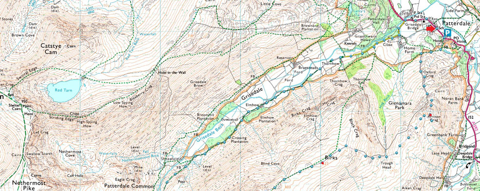 Patterdale alongside Glenriddging acts as a hub for the eastern and far eastern fells yet unlike Glenridding Patterdale doesn't have a centralised car park. With this said parking in Patterdale, especially during the height of Summer can be a problem with only two main sites to leave your car. The first is very popular with fell walkers which is just opposite the White Lion Hotel, here you will find a short layby with room for up to five parked cars. Parking is free. The second place to park is found just outside Patterdale Primary School where you can park on the kerb right outside the School, here you will find spaces for around three to four well parked cars. Parking is free. |
