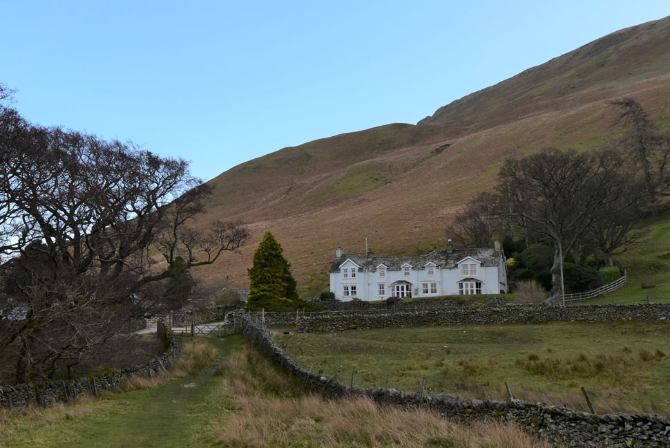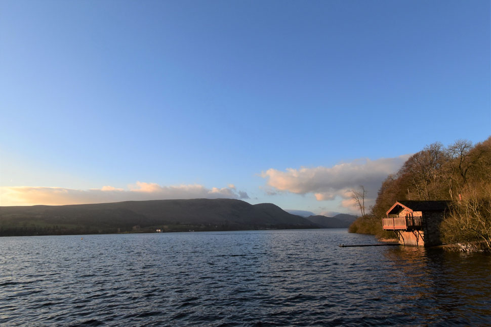 That's Place Fell seen distant right while lower foreground the distinctive red roofed former shooting lodge The Bungalow. |