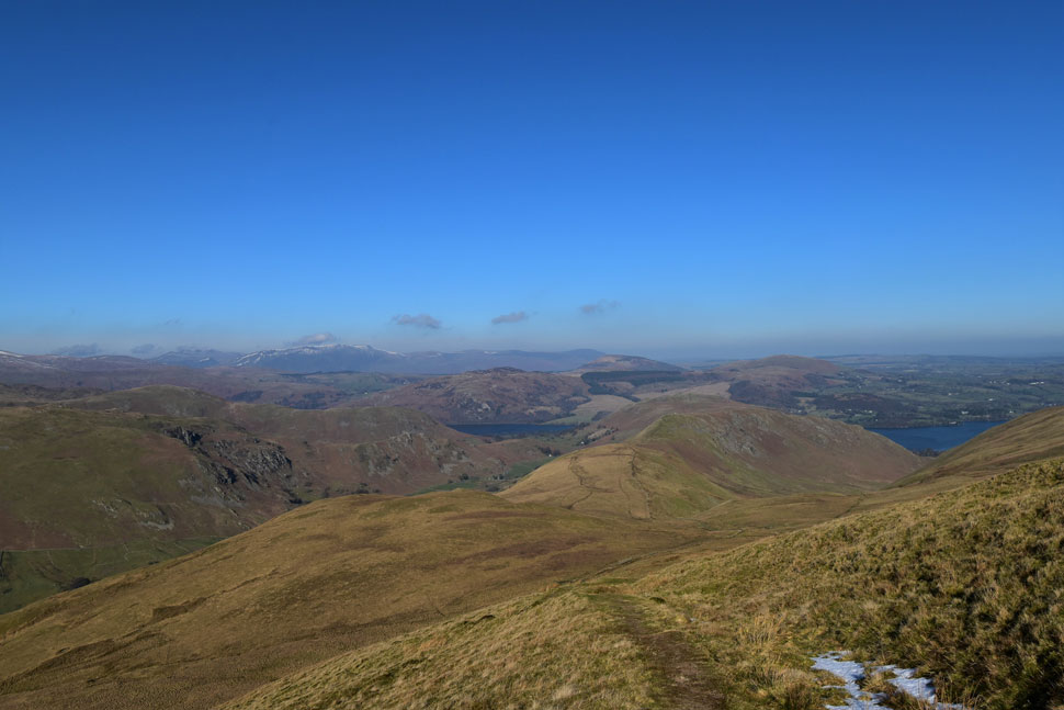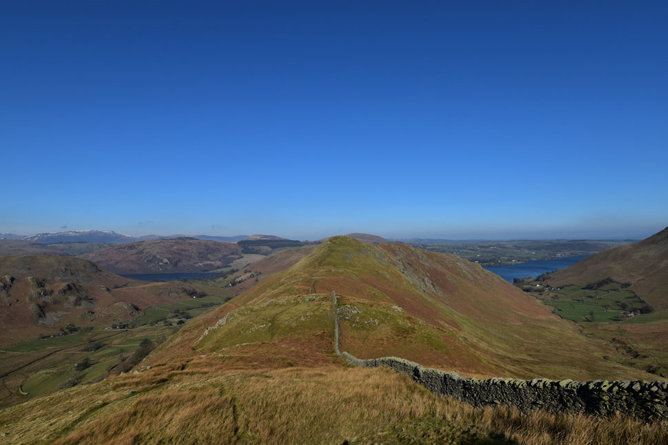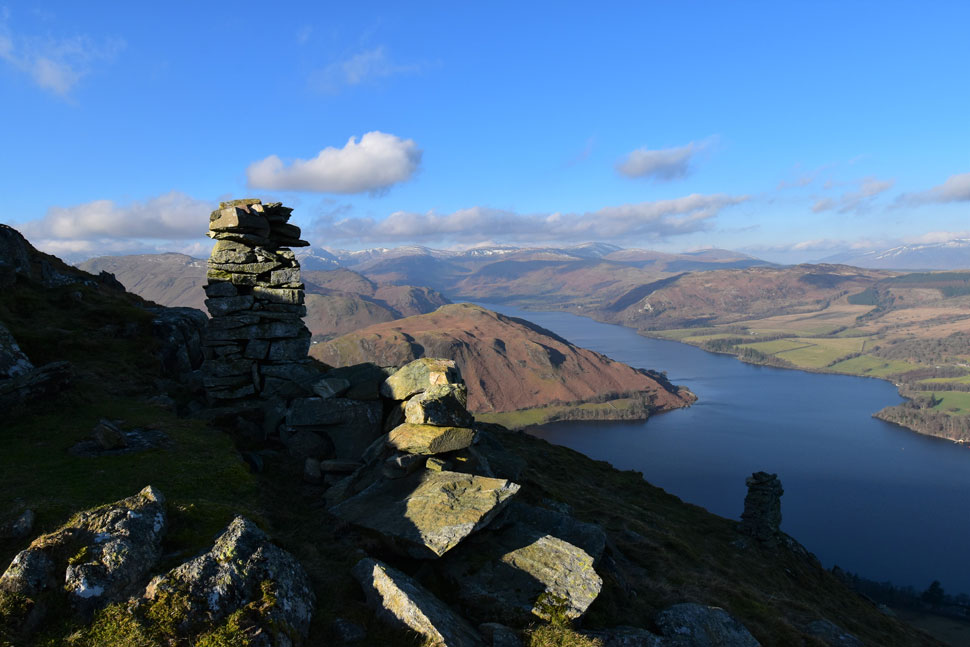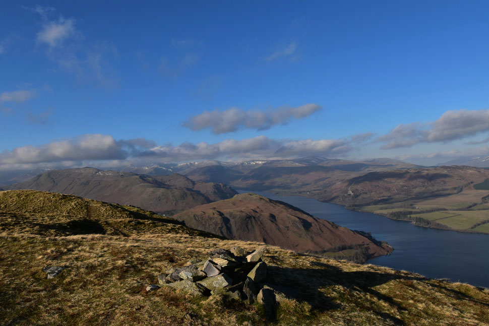 Ullswater seen with an Eastern fells backdrop from Bonscale Pike summit cairn. |