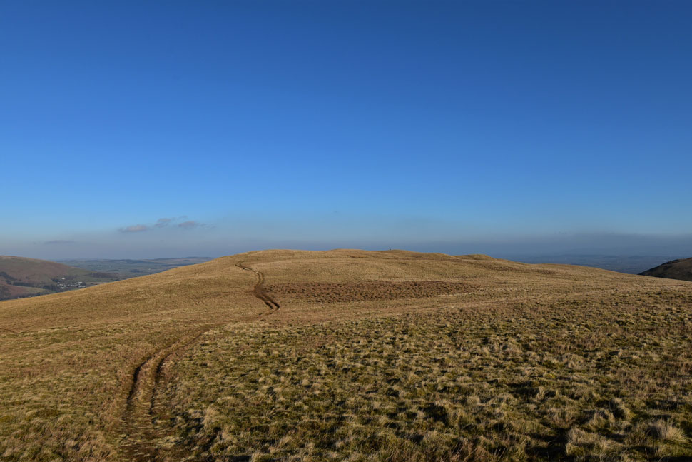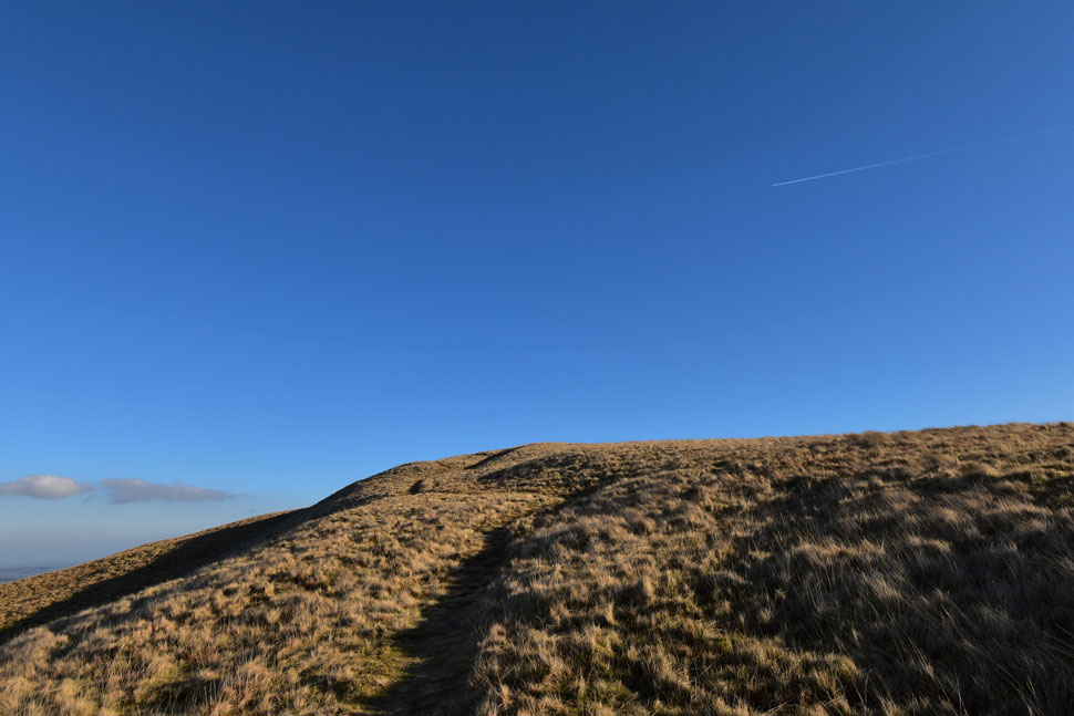 The path climbed steeply yet I was determined not to stop until until I'd crested the first grassy bank from where I could pant down on ground covered. It had been some months since I last climbed anything as steep especially straight from the car but I managed to ascend the steep gradient with controlled breathing and soon the grassy bank was reached.