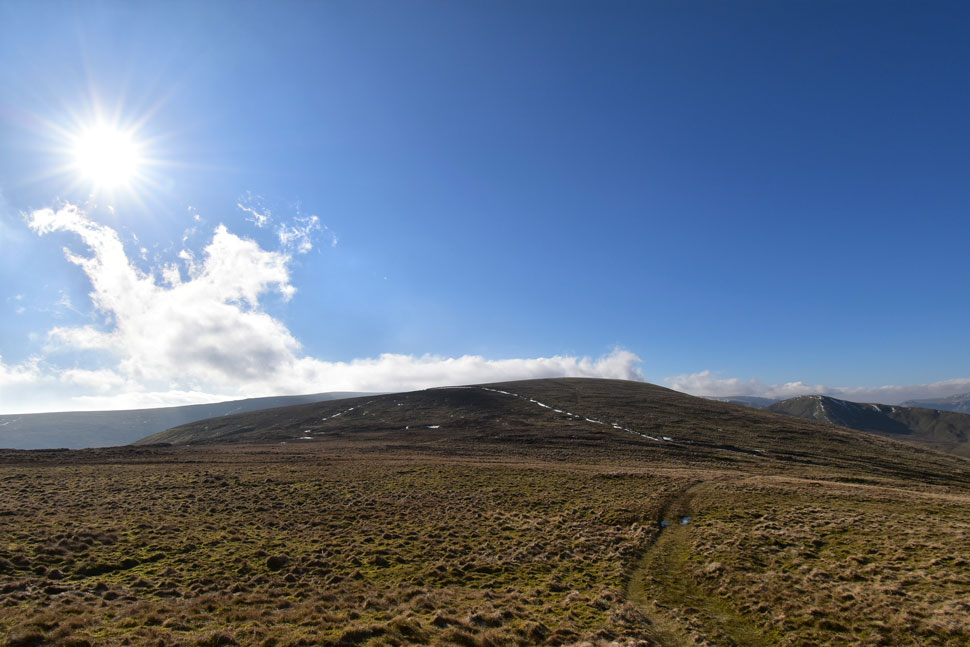 The exposure of the ridge between Bonscale Pike and Arthur's Pike meant the wind could wreak havoc as I crossed the ridge and began my ascent on Loadpot Hill where warm thoughts of last Summers wild camp came flooding back. David and I had spent the best part of 4 hours circulating this summit and 2 more after sunset watching distant lights flicker as midnight fast approached. |