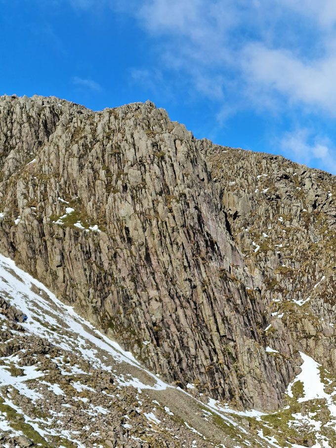 For me Bowfell Buttress is one of the most impressive sights in all of Lakeland. The summit of the buttress itself sits on a second, higher buttress directly behind. |