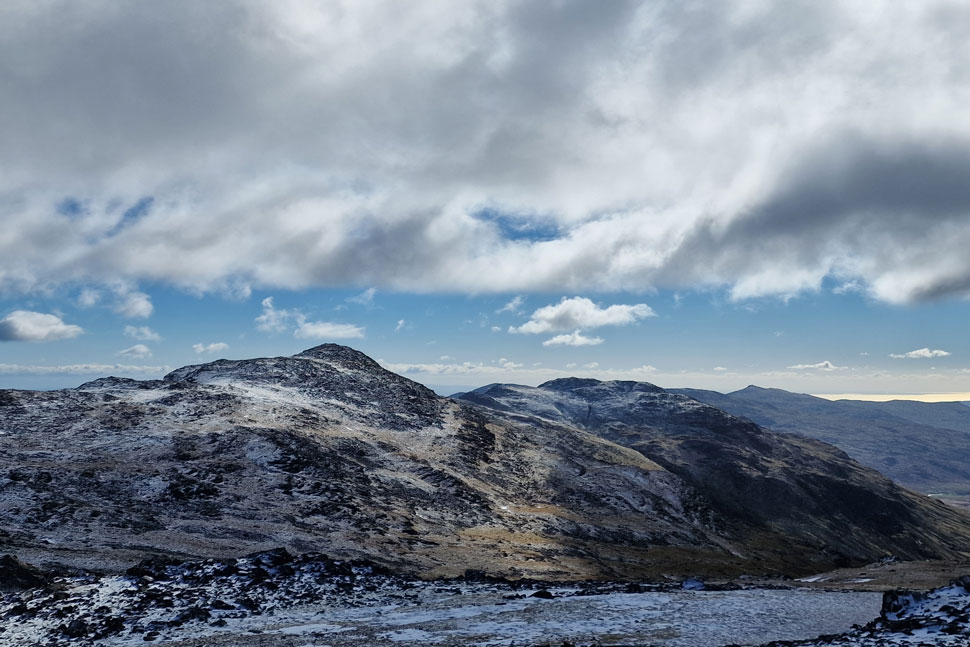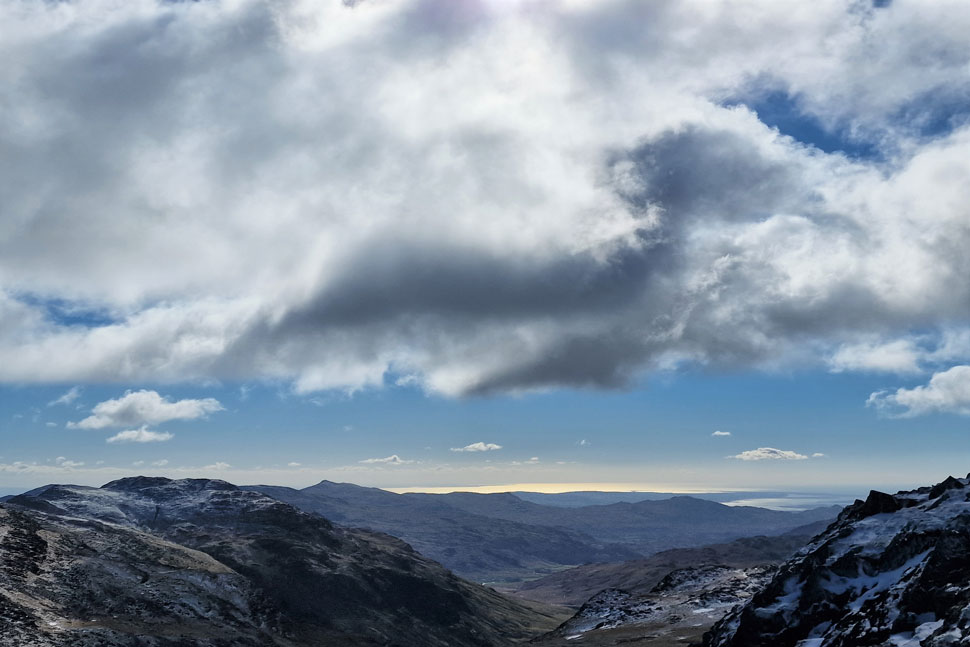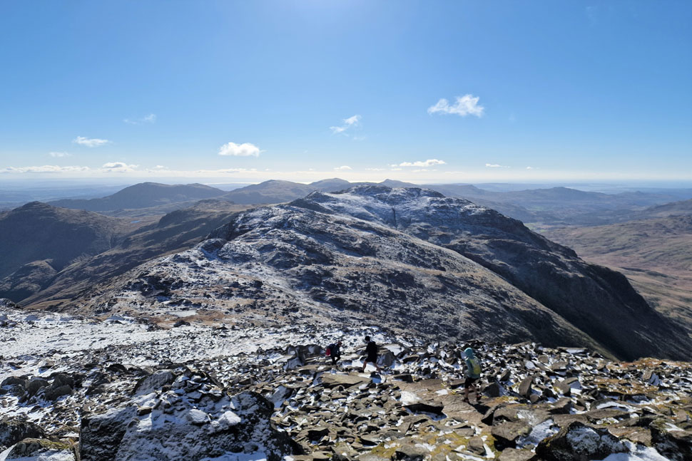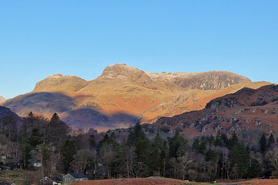 It looks like the Pikes have received a new dusting of snow overnight. That's Pavey Ark over on the right. |