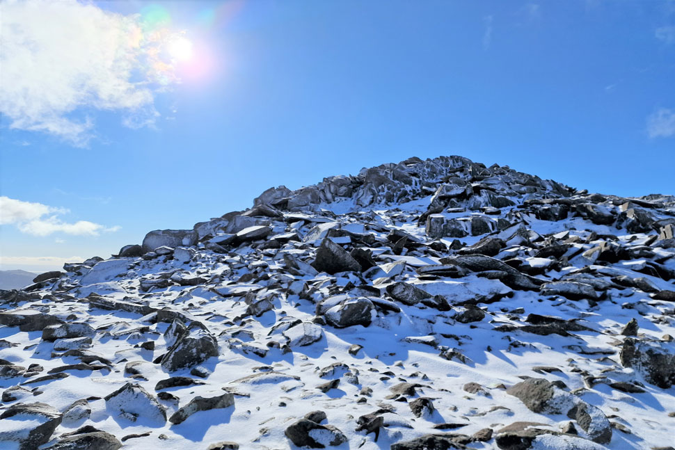 The warmer temperatures in the valleys can easily fool the novice just like we witnessed today folk ascending the higher fells wearing shorts and T-shirts who were about to get one hell of a shock with summit snow, icy winds and even spin drift across the summits.