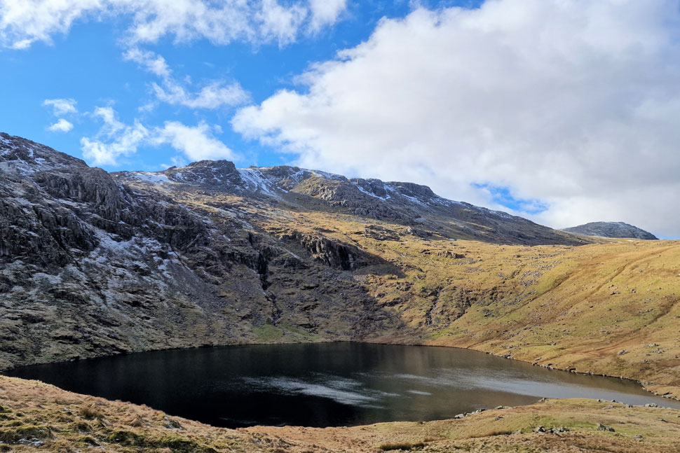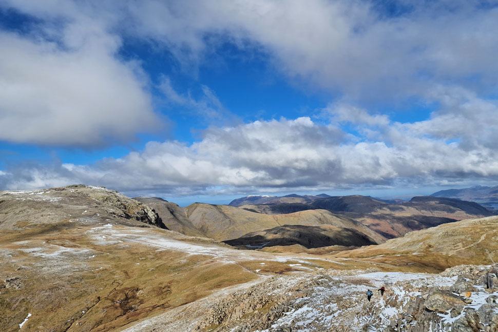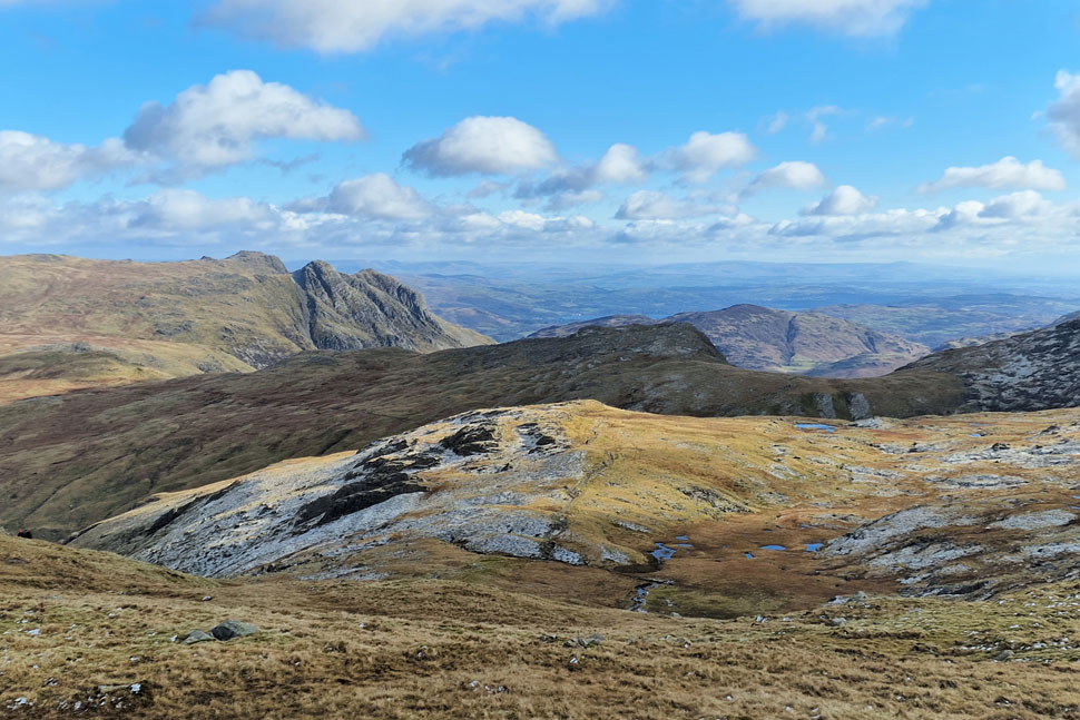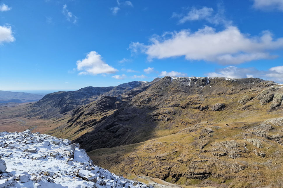 Looking back on Shelter Crags and Gunson Knott. |