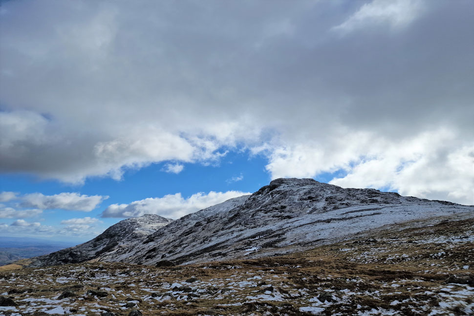 The pointed fell towards the left is Harter Fell, Eskdale. |