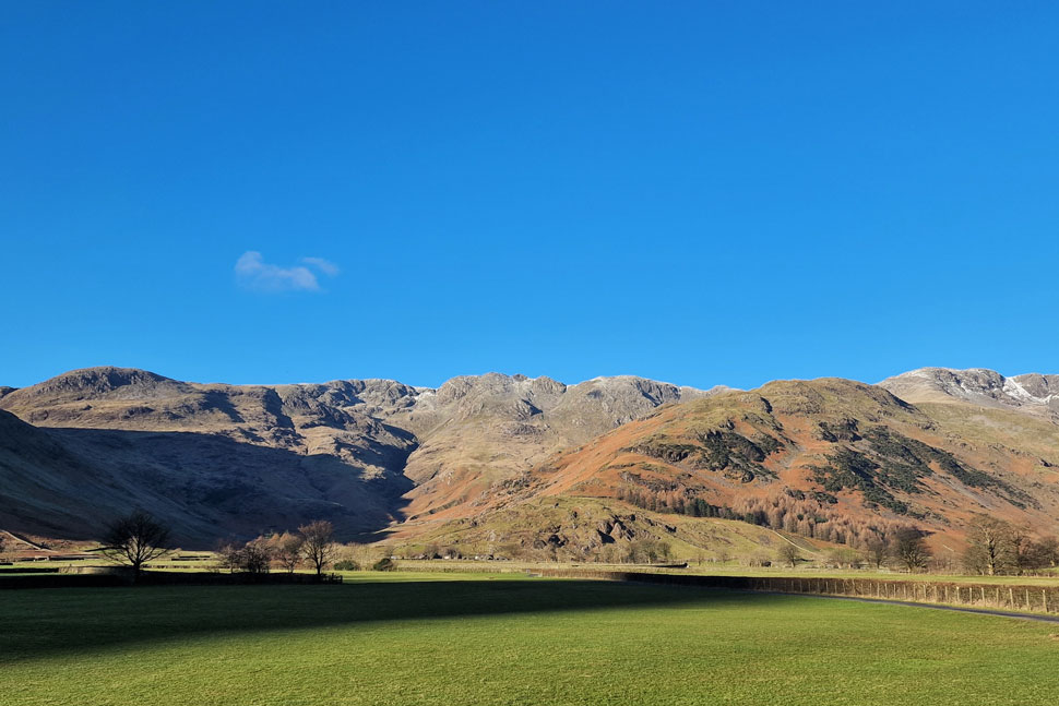 The Langdale Pikes from Elterwater. |