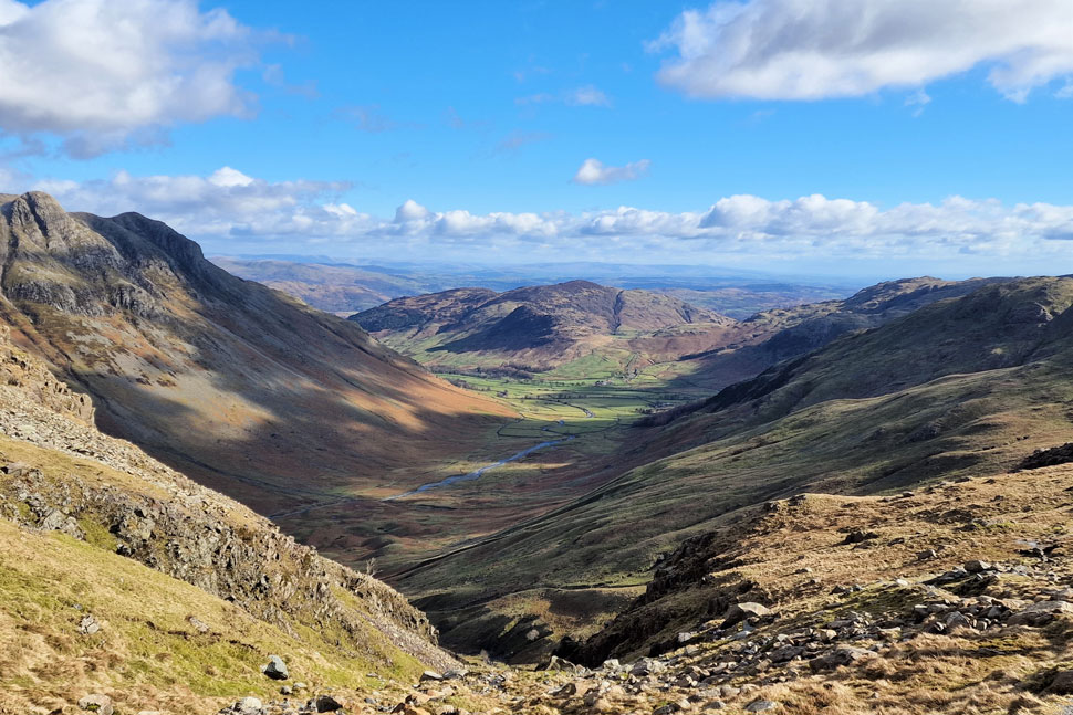 Fantastic views onto the Mickleden Valley and beyond. |